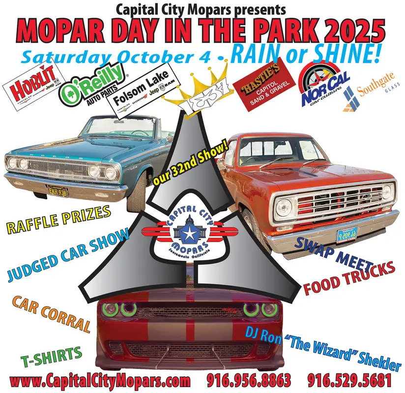 Mopar Day In The Park Announcing CCM Mopar Day in the Park 2025 October 4, 2025Ā ā¢Ā Hagan Park, Rancho Cordova IMPORTANT: Scammers have hacked our Facebook page.Ā Ignore them. There are only 2 ways to sign up for our car show... 1. Use the registration page here on this website.Ā Ā 2. Mail to PO […]