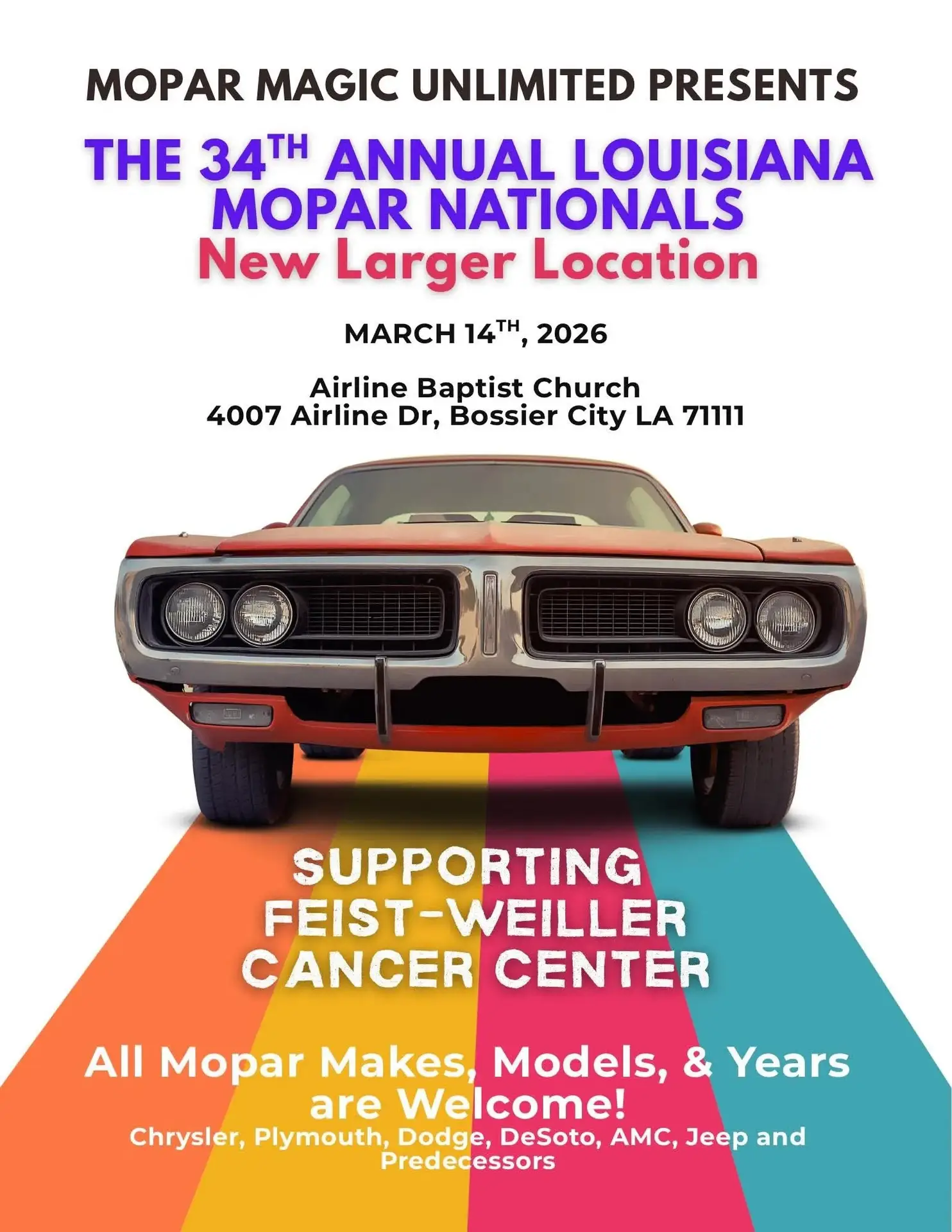 Mopar Magic Unlimited presents The 34th Annual Louisiana Mopar Nationals Date: Saturday, March 14, 2026 Time: (Registration usually opens early morning, with awards typically in the afternoon) Location:Ā Airline Baptist Church, […]
