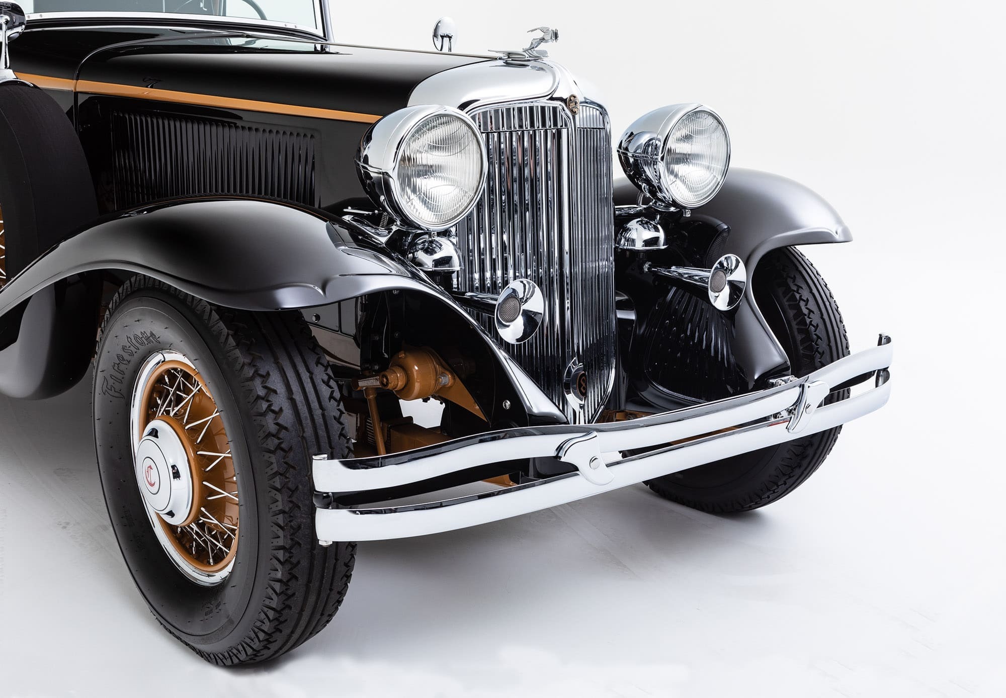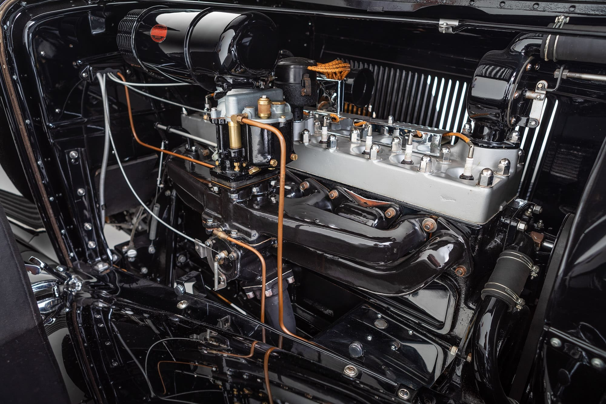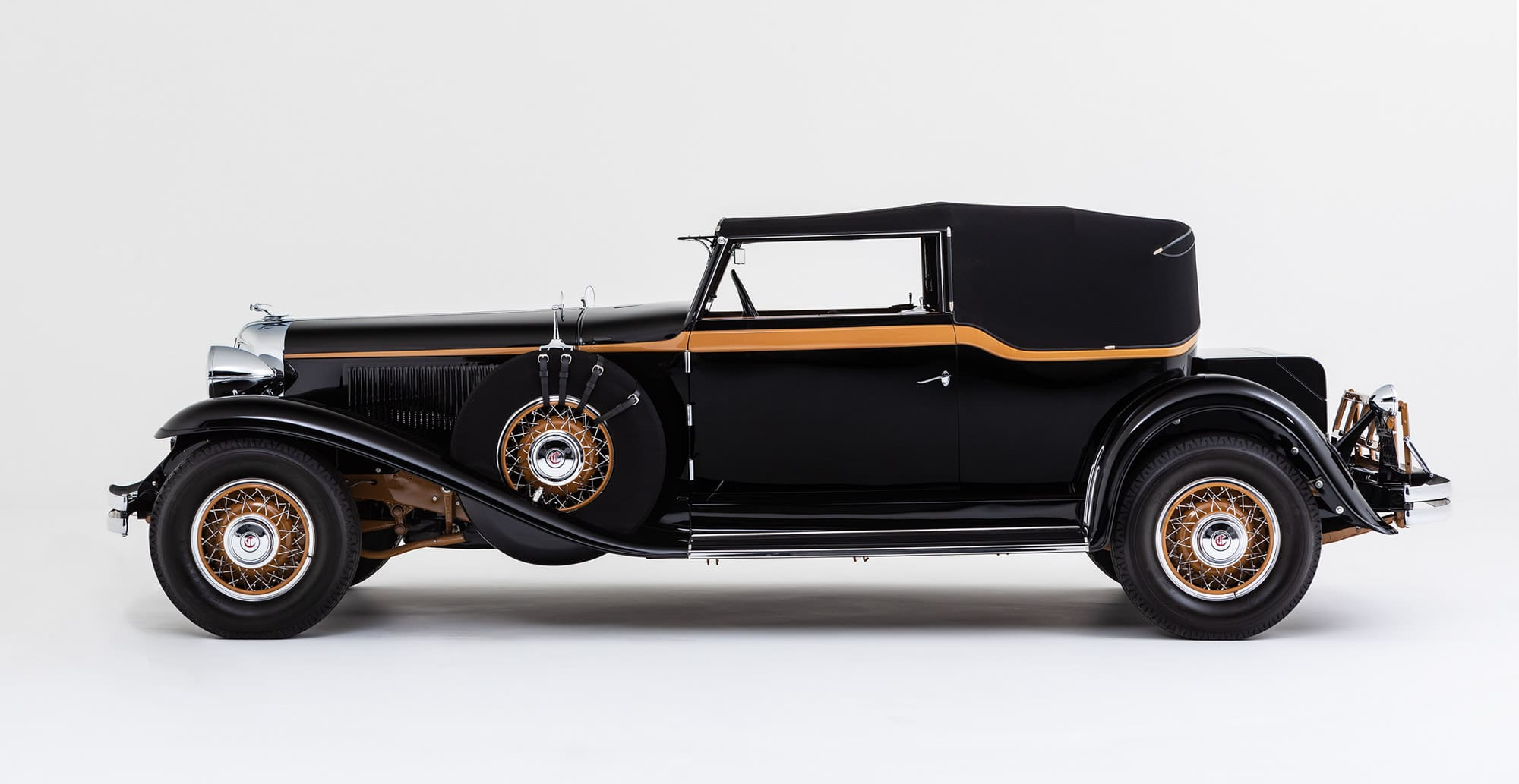 In 1924, Walter P. Chrysler took over the Maxwell Motor Company, renaming it Chrysler and introducing Imperial as their top-of-the-line offering. By 1931, the CG Imperial had evolved into a unique vehicle, with a massive 145-inch wheelbase chassis and body styled to give a low-slung and rakish appearance, being clearly influenced by the Cord L-29. Powered by a 385 cubic-inch straight eight capable of producing 125-horsepower, the CG Imperial had advanced steering and suspension geometry, as well as four-wheel hydraulic brakes, offering superior road manners and the ability to reach 100mph.