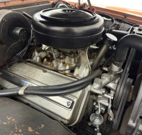 Under the hood is a the original 331ci Hemi V8 engine fed on top by a single 4-barrel carburetor. On the back is a 2-speed Powerflite automatic transmission, and way back for the axle it has 3.36 gears. All is very nice under this hood. This engine bay is all original and very clean. Get my dinner plate and silverware I'm eating here tonite! āIf you can't stand the heat, get out of the kitchen!ā