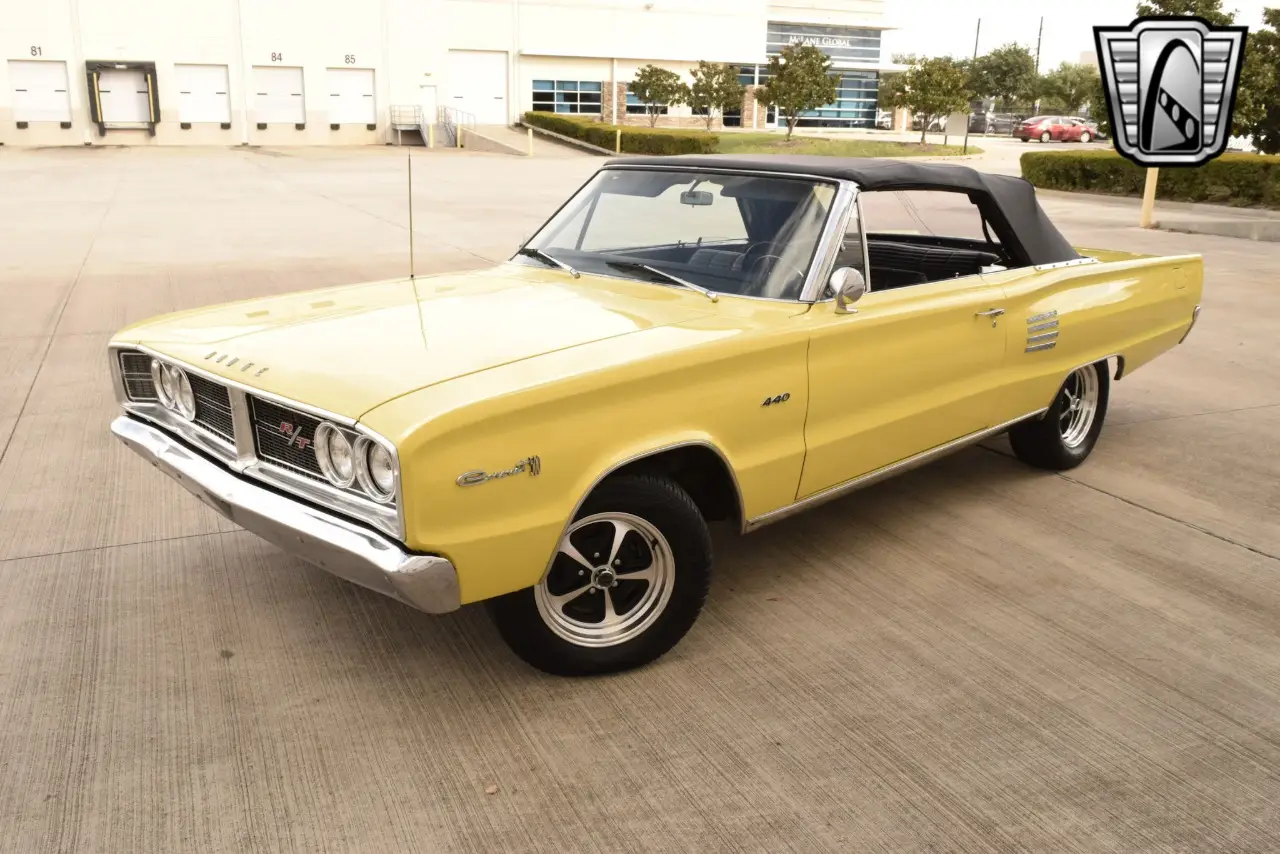 Gateway Classic Cars Houston Showroom is proud to present Introducing a classic piece of American automotive history, the 1966 Dodge Coronet Convertible, a stunning example of mid-60s muscle car design and engineering. This particular model is sure to turn heads with its vibrant yellow exterior, a color that complements the sleek lines and bold presence of the Coronet. The convertible top allows for an open-air driving experience, making it an ideal choice for those who appreciate the thrill of the road and the freedom of the open sky.