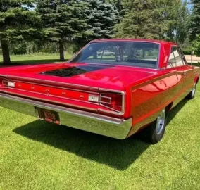 383 4BBL BIG BLOCK HURST COMPETITION PLUS FLAWLESSLY OPERATED 4 SPEED TRANSMISSION RUST FREE LASER STRAIGHT BODY ONE OF 1312 CORONET 440S EQUIPPED WITH THIS ENGINE AND TRANSMISSION INCLUDES 2 BUILD SHEETS, FENDER TAG, AND THE ORIGINAL OWNERS CERTA CARD AMERICAN RACING TORQUE THRUST II ALUMINUM WHEELS FRONT DISC BRAKES BEAUTIFUL INTERIOR WITH A NEW RETRO SOUND SYSTEM AS IS