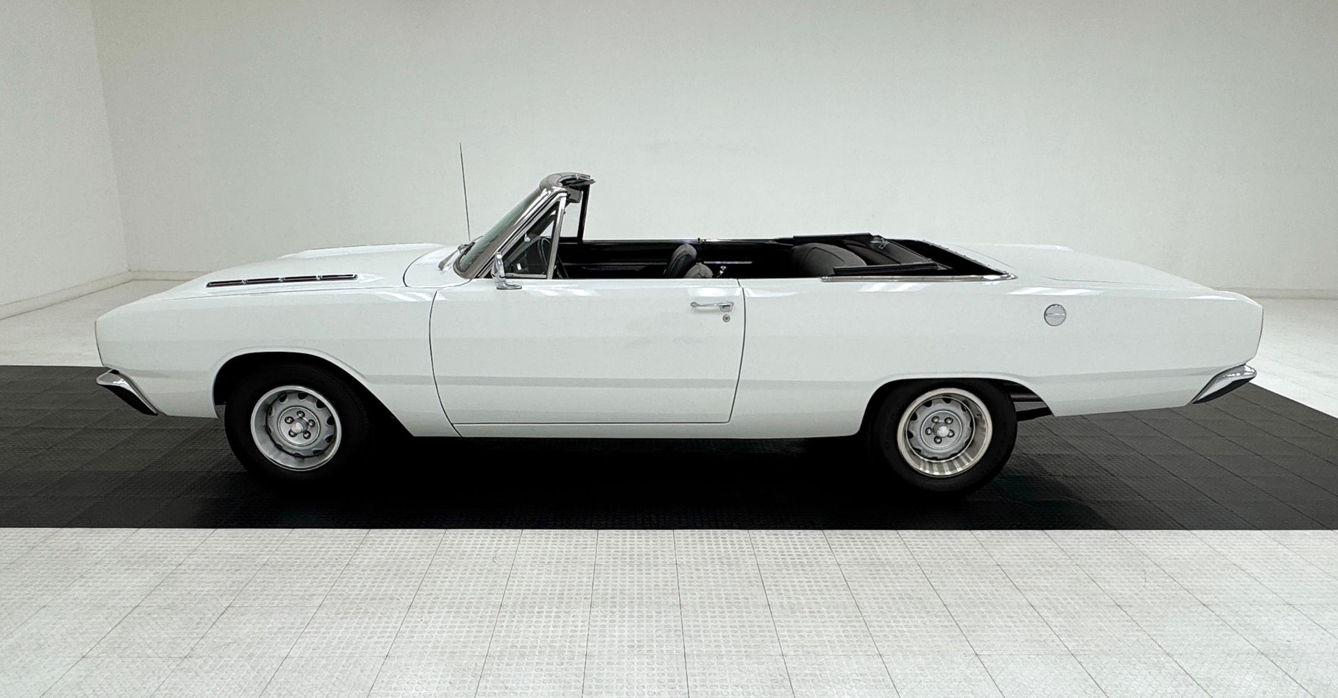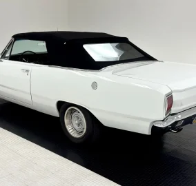 Modern paint systems make old cars pop, and that's the case with the two stage white paint on this square bodied beauty from '67. The faux hood ducts are a not so subtle inference that something wicked might live under that hood as the rest of the car presents as a common, but sporty commuter car, especially in convertible form. That black canvas top is in nice shape and provides a good sized rear glass window. Up front, marker lights are sculpted into the undulating grille as round headlights surge forward over a straight chrome bumper. Jumping to the rear, square tail lights are muscular in their simplicity and another chrome bumper shines bright. Mopar Rally wheels look fantastic and are staggered, 14-inch front and 15-inch rear. The trim and paint are very nice on this car and we could not find any exterior imperfections.