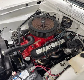 This white wonder starts up with zestful ease and bellows from the big dual exhaust. Into gear we go and out to the test loop where the drivetrain provides plenty of pull as the tachometer dances before us. The staggered wheel and tire set up creates a surefooted stance that elicits confidence in turns and tracks straight, but the tires are 23 years old, so we're not lightning it up any time soon. We note the heater blower is not working but all other functions available in this simply configured '67 operate as they should. While Classic Auto Mall represents that these functions were working at the time of our test drive, we cannot guarantee these functions will be working at the time of your purchase.