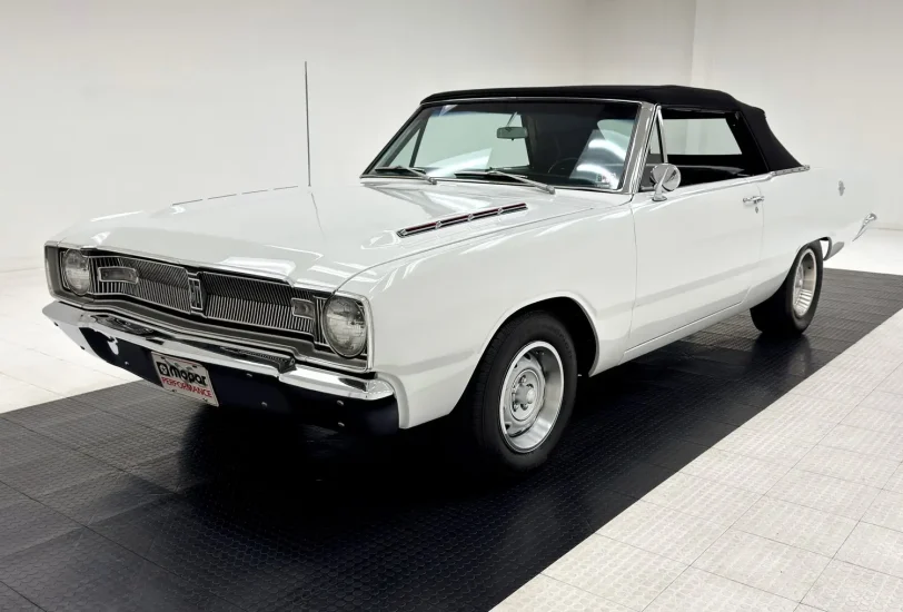 For consignment, a 1967 Dodge Dart GT convertible showing 83,064 miles, but the true miles are unknown. This desirable model is a stunner in white and built to the hilt! Dart GT's consistently find new homes when they've graced our halls, and this well sorted car will probably scoot out of here faster than you can say āMopar or no car!ā.
