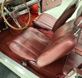A decent greenhouse welcomes occupants into the red room that is the cabin and the 340 comes to life with a prime of the carb and a turn of the key. Factory Formula S Barracuda's were rated at 275 horsepower and we don't have a dyno, but can attest to good power here and brisk acceleration. Braking is on point and tracking and handling make the car a pleasure to drive. We note the heater/AC blower is not working but all other functional items operate as they should. While Classic Auto Mall represents that these functions were working at the time of our test drive, we cannot guarantee these functions will be working at the time of your purchase.