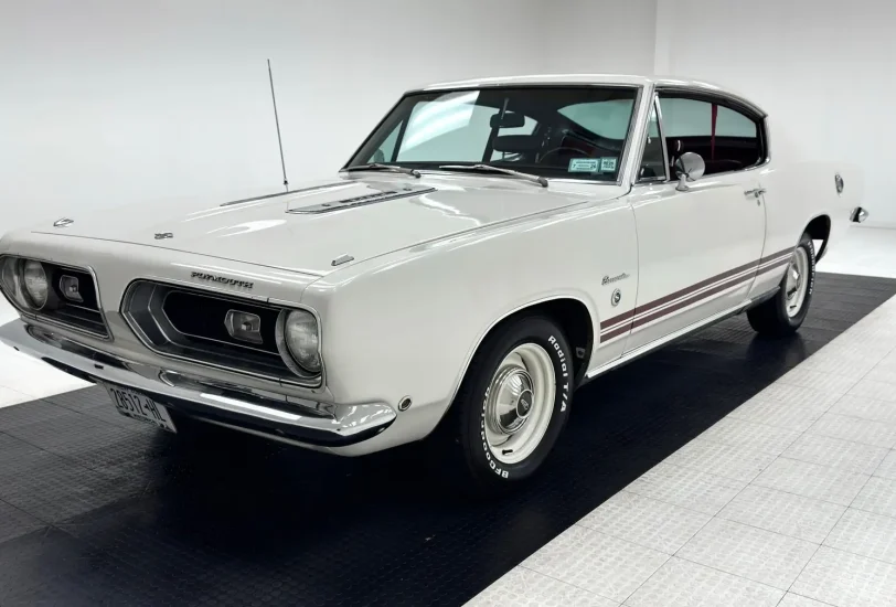 For consignment, a 1968 Plymouth Barracuda Formula S fastback tribute showing 81,643 miles, but the true miles are unknown. Born with a 318, but now housing a 340ci V8, the engine and other upgrades pay homage to the legendary Mopar performance version of the Barracuda, the Formula S.