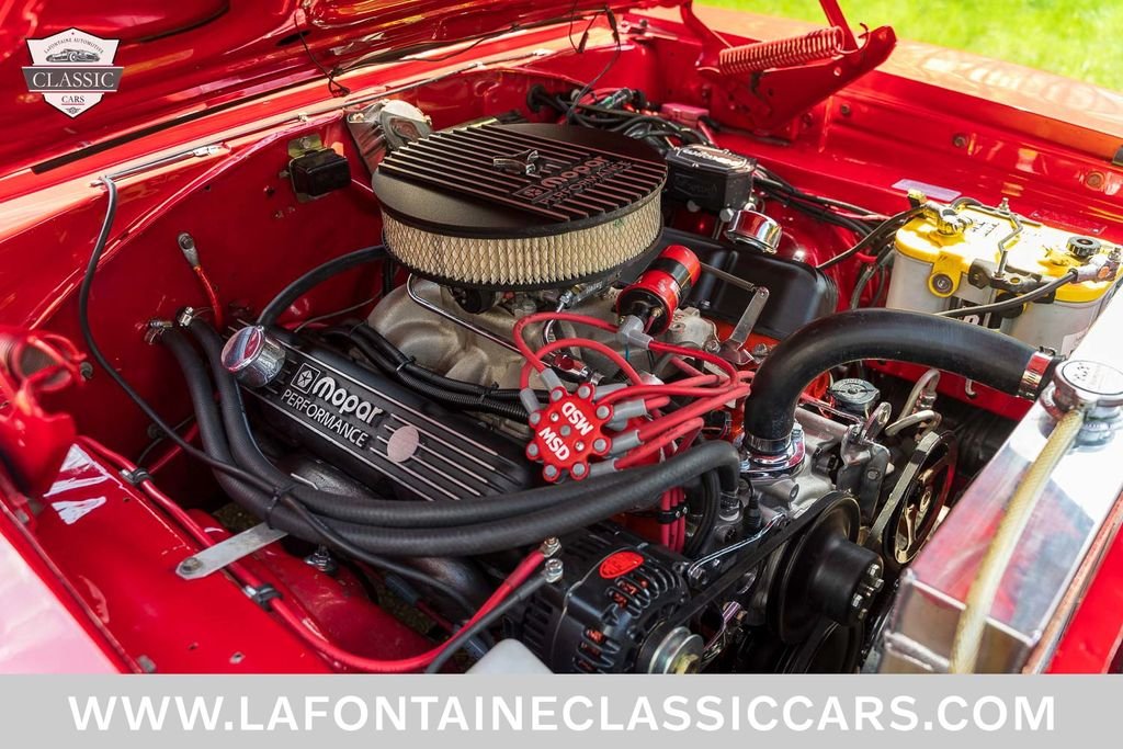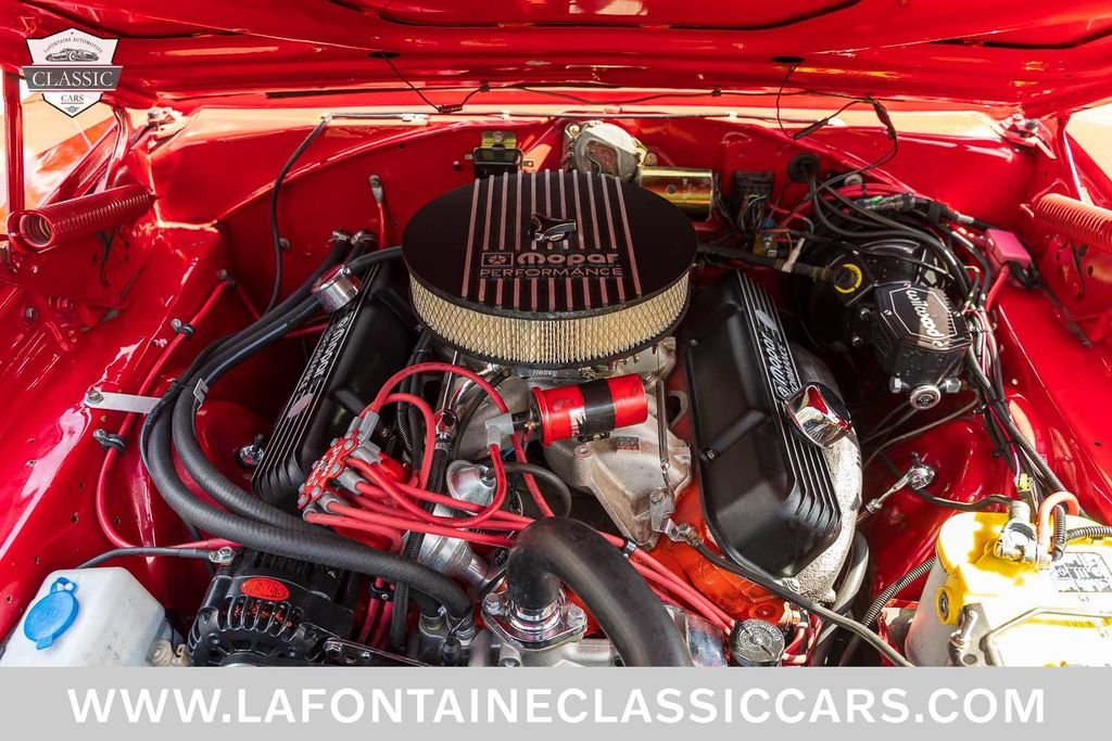 To make this car handle as good as it looks, QA1's full front K-member, upper and lower tubular control arms, and sway bar are installed along with their adjustable shocks on all four corners! The ride is tight but not overly stiff! The engine, trans, and rearend all received adequate attention as well to make sure this car was going to be ready for years of enjoyment ahead! Under the hood now sits a freshly sealed period correct 440 V8, topped with an Edelbrock Aluminum intake manifold, Mopar Performance air cleaner & valve covers, MSD coil, distributor and Digital Ignition controller. Additionally a high flowing water pump, Be Cool Aluminum radiator, Spal electric fan, Powermaster high-output alternator and a Powermax high torque starter all play their part! The 727 transmission was serviced, re-gasketed, and fitted with a finned deep pan to keep temps steady under spirited driving, the rear end has been rebuilt with a new ring & pinion, bearings, seals, and is now spinning 3.70 Sure Grip gears! Power meets the pavement through a set of Mickey Thompson 235/60/15 front, and 275/60/15 rear radial tires mounted on new Magnum 500 wheels!