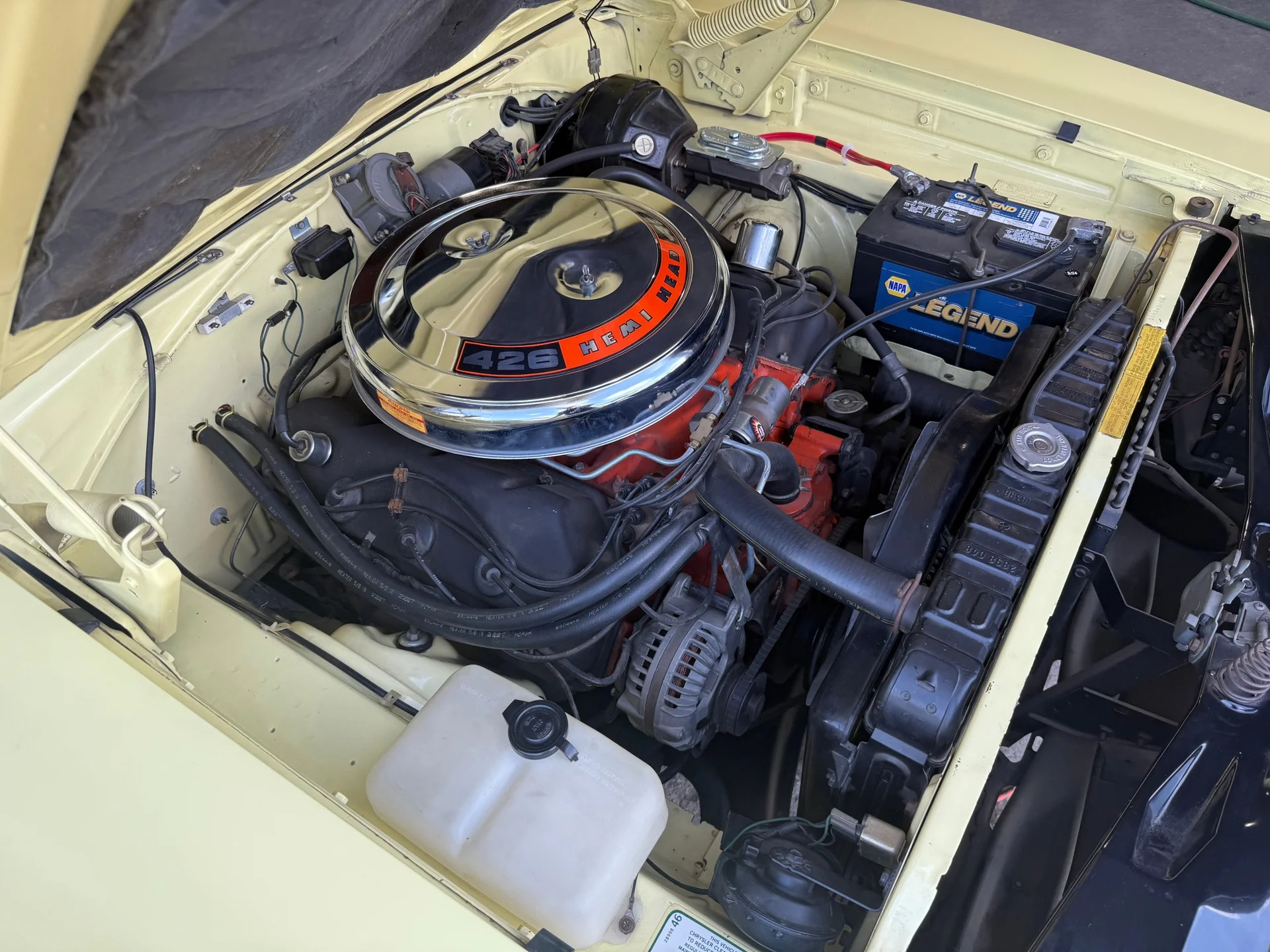 -Retains its original carburetors, manifolds, air cleaner as well as Hemi specific transmission cooler,