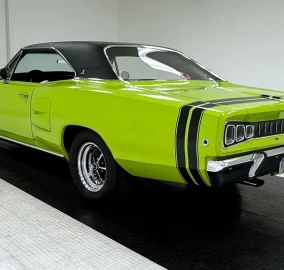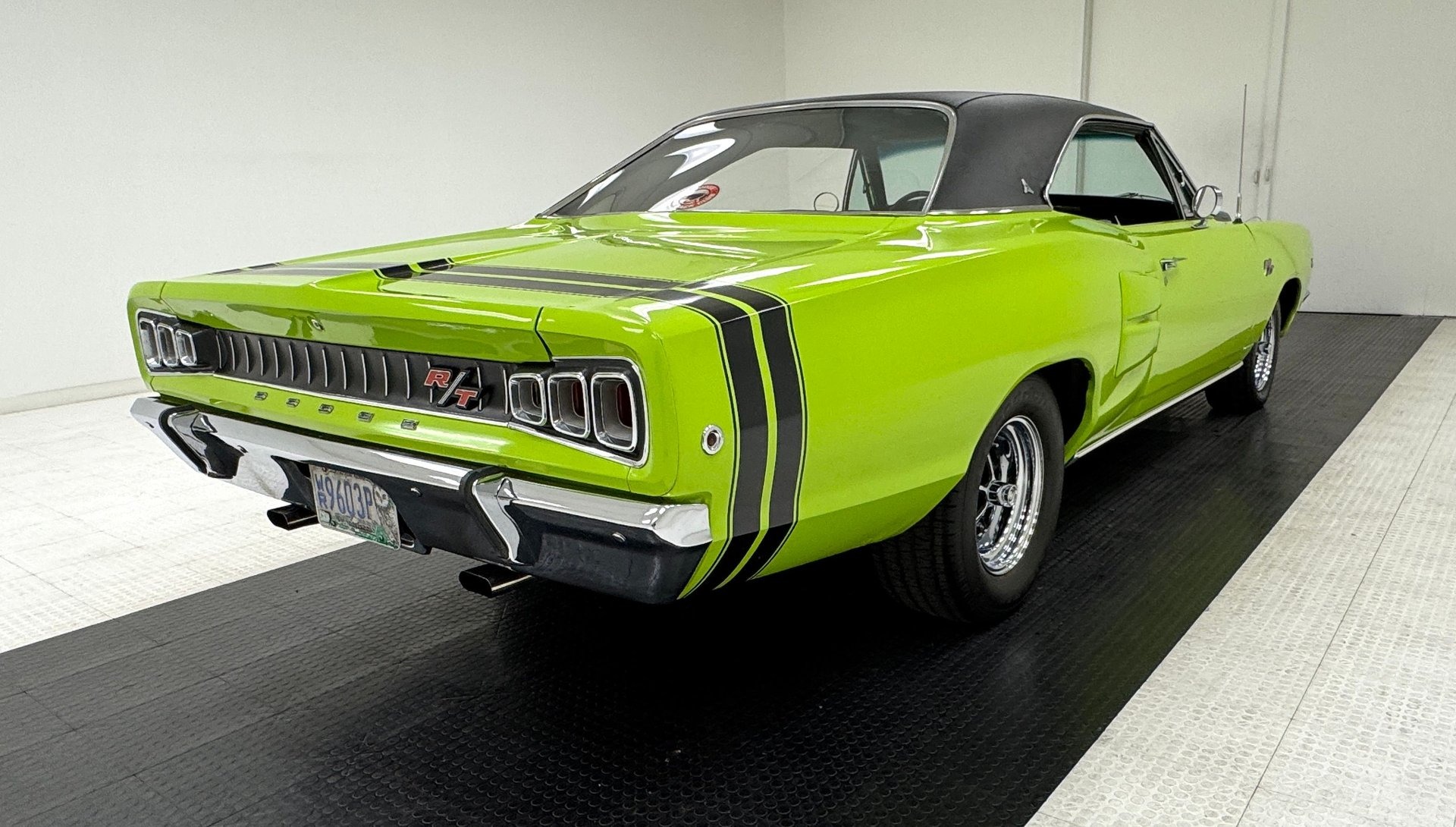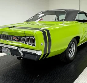 For consignment, a 1968 Dodge Coronet R/T Hardtop tribute in Sublime Green, fuel injected and sporting a new hydraulic roller 440ci V8 that's putting out a dyno proven 538 horsepower. The car has a title verified 64,201 actual miles, but it now has a new motor with less than 200 miles. The car also sports rack and pinon steering and rebuilt suspension with new leaf springs and torsion bars. The new motor with a roller cam upgrade was built by Performance Injection Equipment. The Coronet has an esteemed credit to being a part of the invitational display at the 2014 Chrysler Nationals at Carlisle, a trophy winner at the 2017 Ocean City Cruisin, and a participant in other shows. What started out as a mild-mannered Coronet 500 is now a rip-roaring replica of the legendary R/T.
