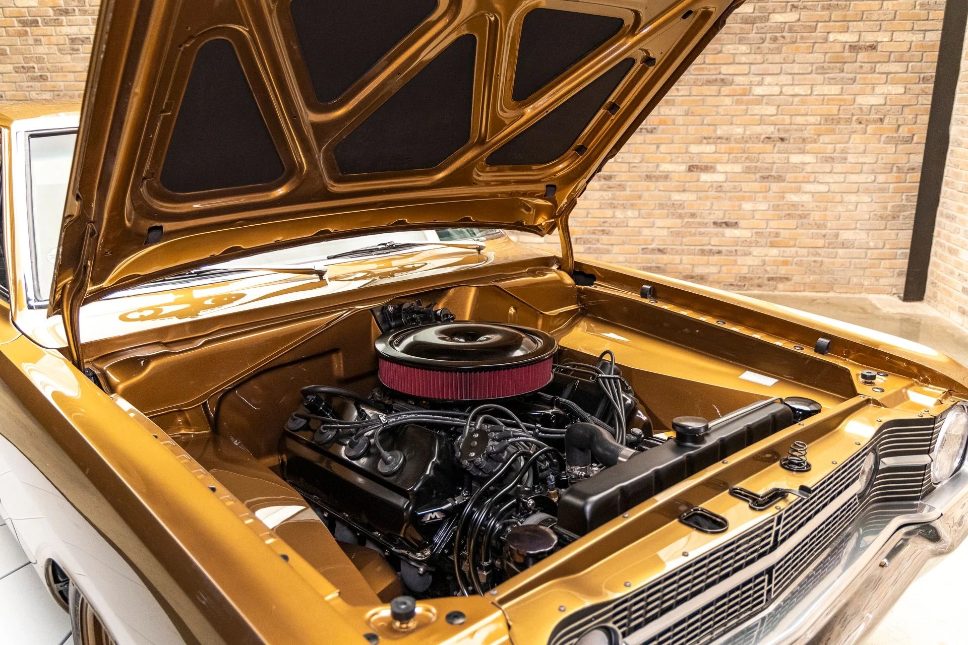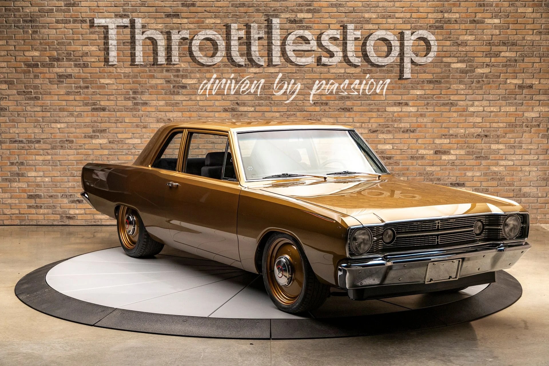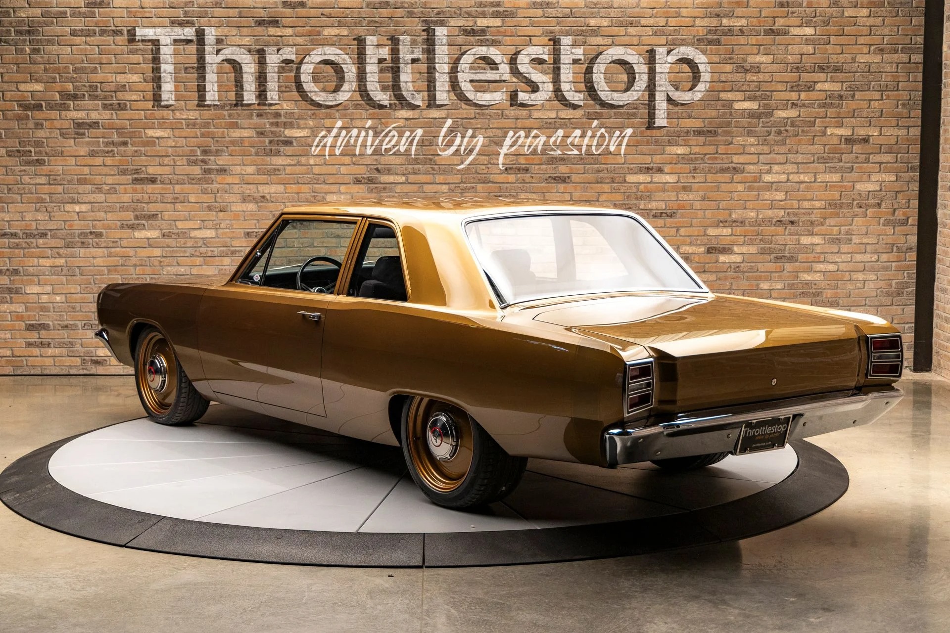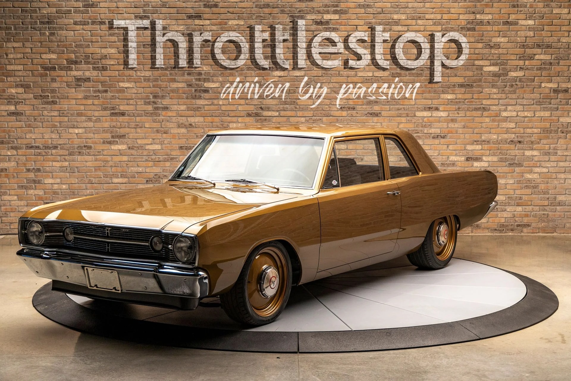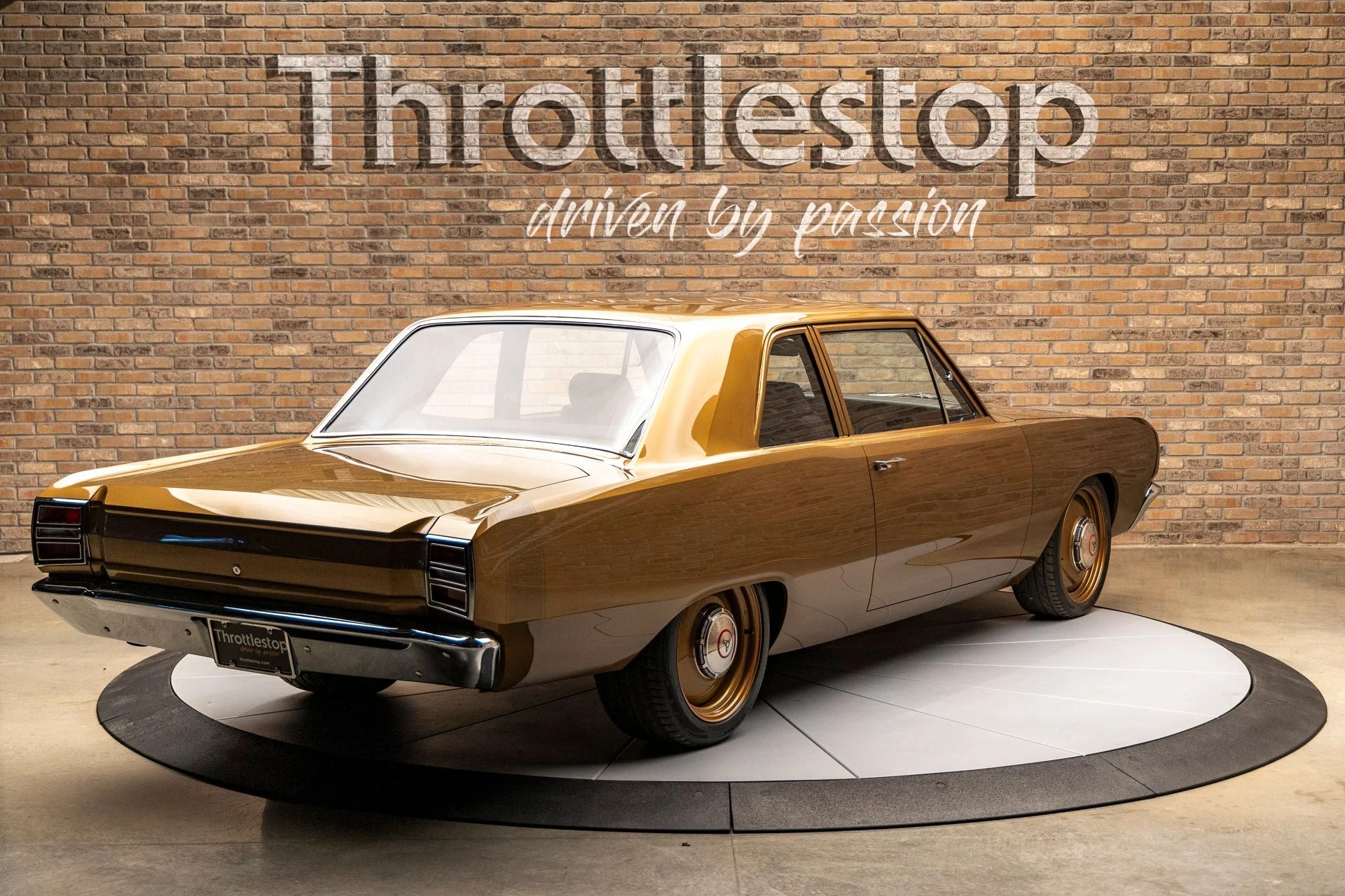 For sale: a stunning custom 1968 Dodge Dart, finished in a breathtaking gold metallic—one of the finest builds we've ever showcased at The Throttlestop. Built by Platinum Custom Cars of Manteno, Illinois, this Dart is a true masterpiece of performance and craftsmanship, with no expense spared and every detail meticulously perfected. The fully stripped body features a shaved fuel door, cleaned-up drip rails, smoothed cowl vents, and a custom front spoiler, all coming together in a spectacular fit and finish. The under-hood presentation is equally impressive, smoothed and polished to a show-quality standard that complements the stunning paint and bodywork.