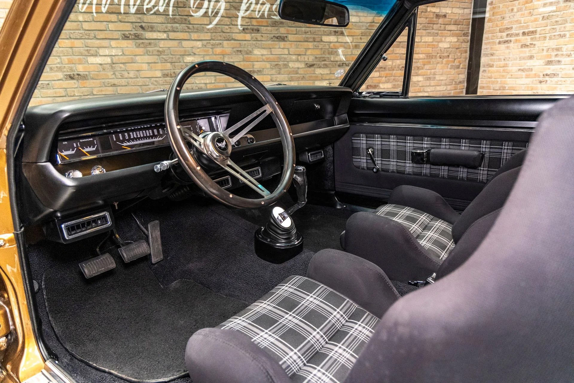 Inside, the Dart boasts a completely custom interior by The Carriage House in New Lenox, Illinois. Custom-covered Corbeau seats, a bespoke Dakota Digital dash, and Vintage Air Conditioning create the perfect blend of comfort, style, and modern convenience. The car's aggressive stance, complemented by oversized color-matched steel wheels, adds the finishing touch to its commanding presence.