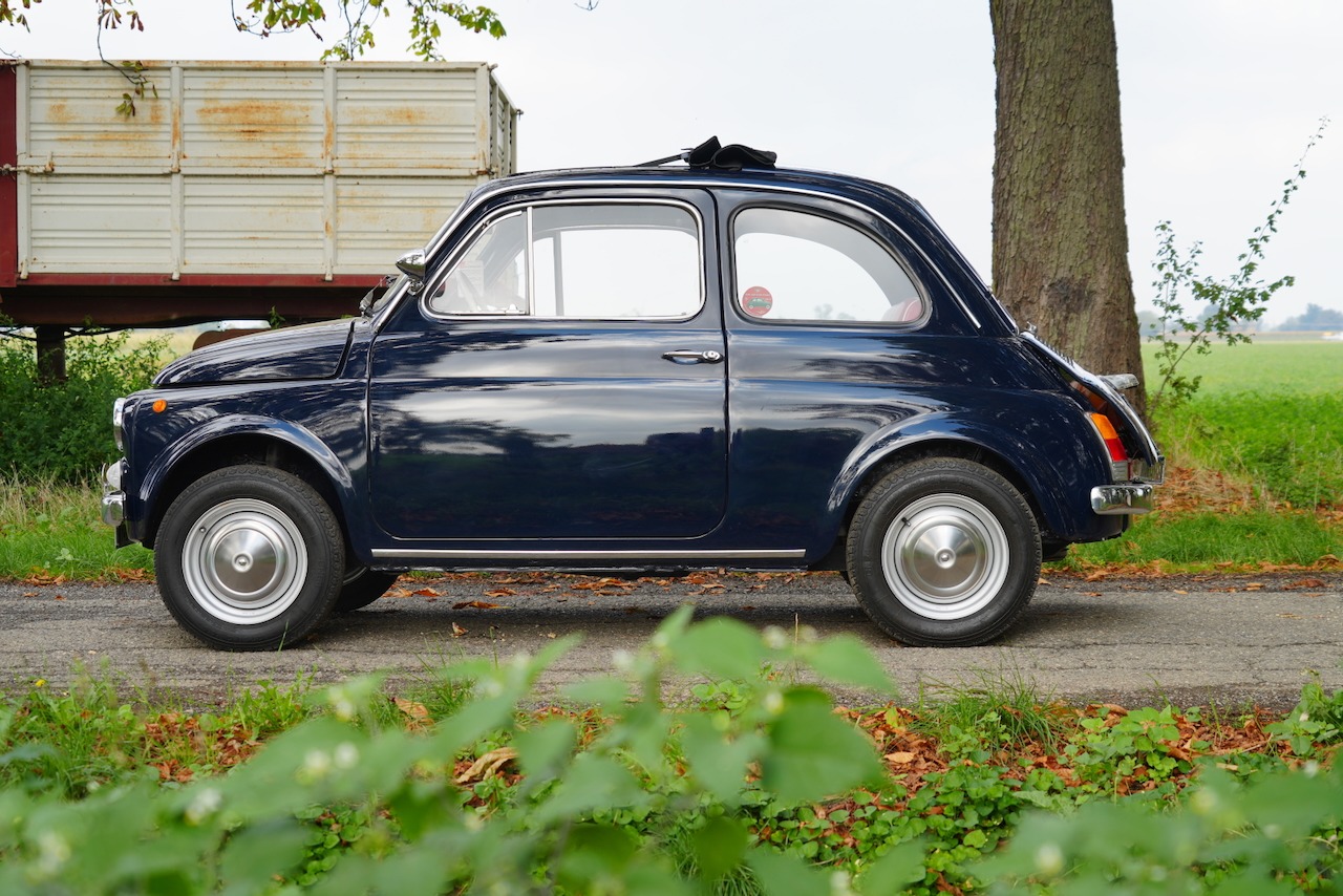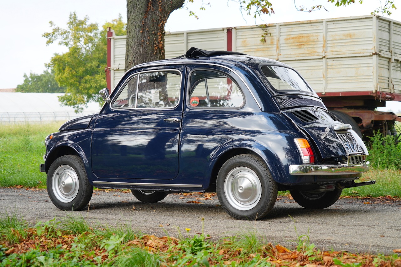 This 1968 Fiat 500F is said to have been refurbished in 2020 and fitted with a replacement 652cc parallel-twin from a Fiat 126. Finished in blue over red vinyl upholstery, the car is equipped with a four-speed manual transaxle, a folding canvas roof panel, and 12″ steel wheels with polished hubcaps in addition to chrome trim, front bucket seats, and a radio. Previously listed on BaT in October 2025, this 500F is now offered at no reserve in Italy on dealer consignment with Italian registration.