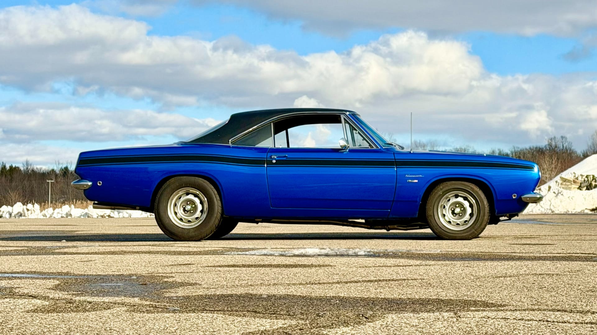 Viper Blue Metallic exterior with Black stripes