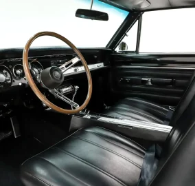 INTERIOR: It's like new. Premium Legendary upholstery and door panels. The dash area is mint: knobs, trim, gauges, dash pads etc. It's aradio delete but hasa modern stereo below the dash. Very nice original console between the bucket seats. The rear seat folds flat, a 2+2! The deluxe wheel is restored like new. Interior lights work.