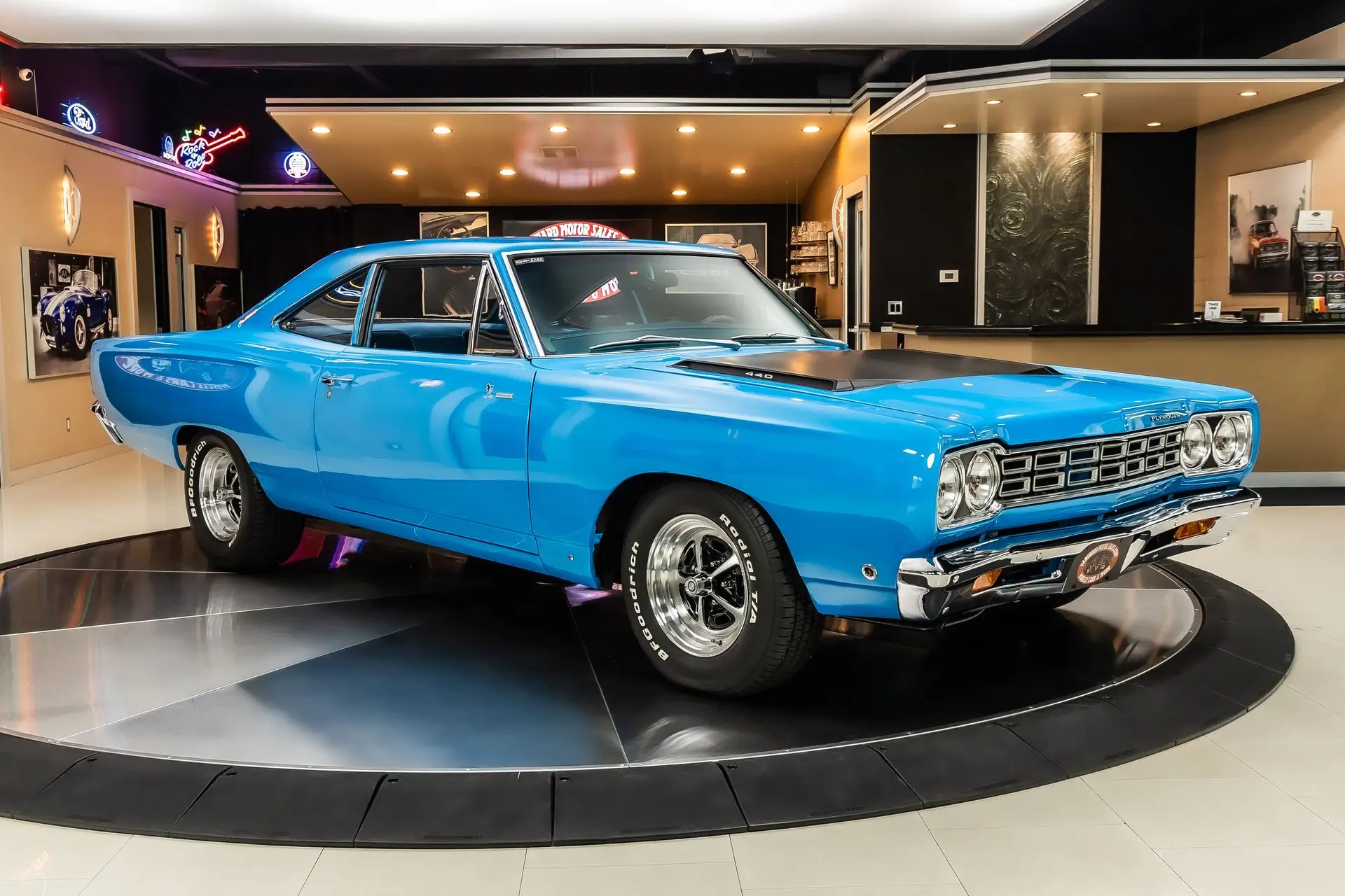 Check out this beautiful 1968 Plymouth Roadrunner! This Roadrunner has undergone a complete & meticulous frame-off restoration with no expense spared! This Roadrunner has been refinished to it's original special order paint code Petty Blue and features Aluminum Wheels Wrapped In BFGoodrich Radial T/A Tires! Under the hood sits a Mopar 440ci V8 paired with a Holley Four Barrel Carburetor! Power is sent to the rear wheels through a Mopar 4 Speed Manual Transmission, & Sure Grip Rear End with a 3.91:1 Gear Ratio. Additional Features Include, Front Disc Brakes, Power Steering, New Hardware, New Brake Lines, New Factory Style Suspension, New Fuel Lines and a New Gas Tank!