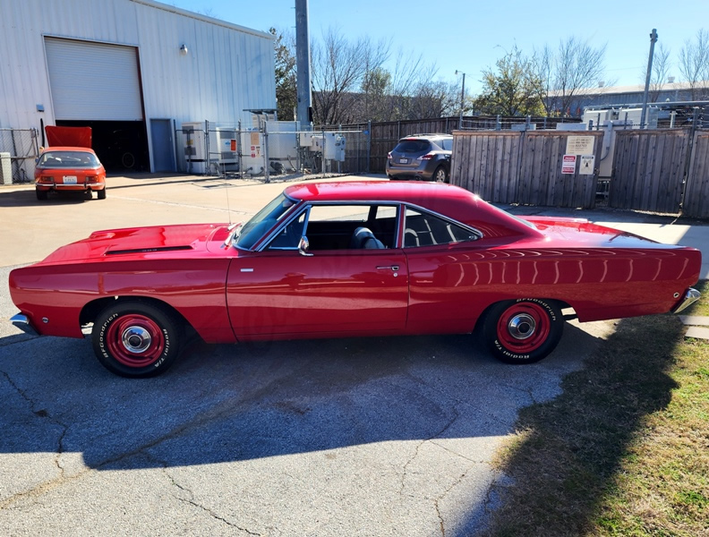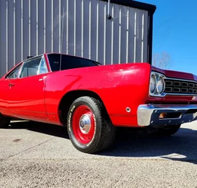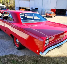 1968 was a special era for the muscle car world. This was somewhat late in the decade for muscle cars but heavy regulations that would soon start popping in the 70's haven't arrived. That made vehicles like this Plymouth Road Runner possible. The were introduced in 1968 and were designed to integrate powerful engines with a focus on performance but with a more desirable price tag. To accomplish this Chrysler focused on performance only making a stripped down hot rod. Going fast was the focus and they pulled it off beautifully. Fancy trim, fancy wheels, and power options were left out to make sure nothing would rob it of power. This very clean example is a very stock car with only 36,379 reflected on the odometer. The body on it is all very solid and wears its original Matador Red paint. 1 of the quarters did require repair due to some minor rust and the repair was done in steel. Despite being stripped of most of the trim they did still installed a great looking grill with double headlights and nice chrome bumpers. This car was also ordered from the factory with a tinted windshield, drivers side remote operated mirror and drip rail moldings. It also has the factory hood with side vents that incorporate the blacked out trim. It rides on its color match wheels with dog dish center caps which really work well the the sleeper feel the Road Runner was meant to be.