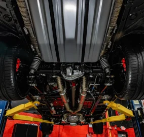 Inside, this Roadrunner is a fully restored cabin finished in Red Carpeting along with the Red dashboard & Red Vinyl Seating. The cabin features a Front Bench Seat, Rear Bench Seating, Red Headliner, Lap Belts & the 5 Speed Manual Floor Shifter! On the dash is Aftermarket Gauges on a Fully Customized Dash Board with a Custom Aftermarket Stereo System and the Custom Leather Wrapped Steering Wheel! The underside has been finished in Semi Gloss Black and features a Band clamped Exhaust System wrapped in heat tape!