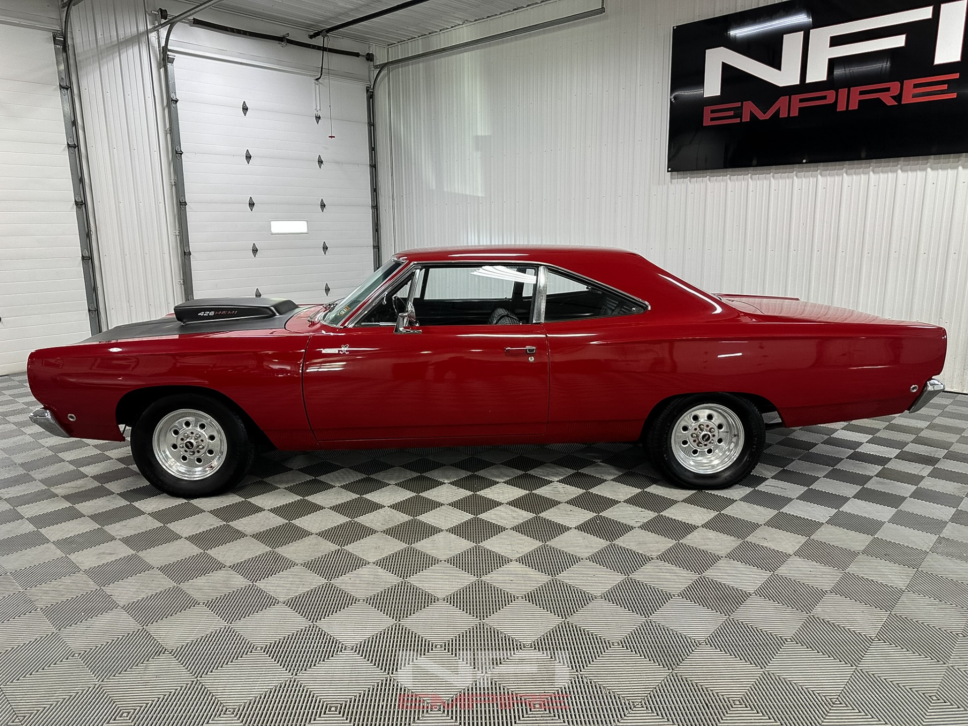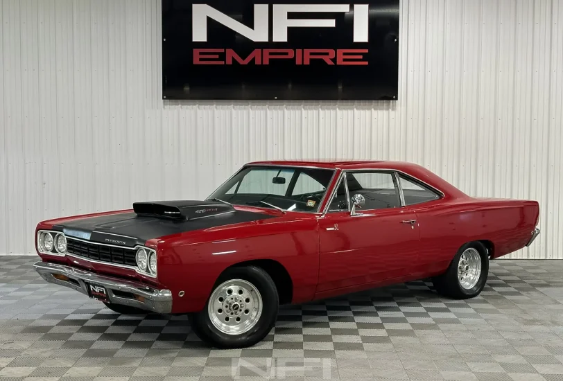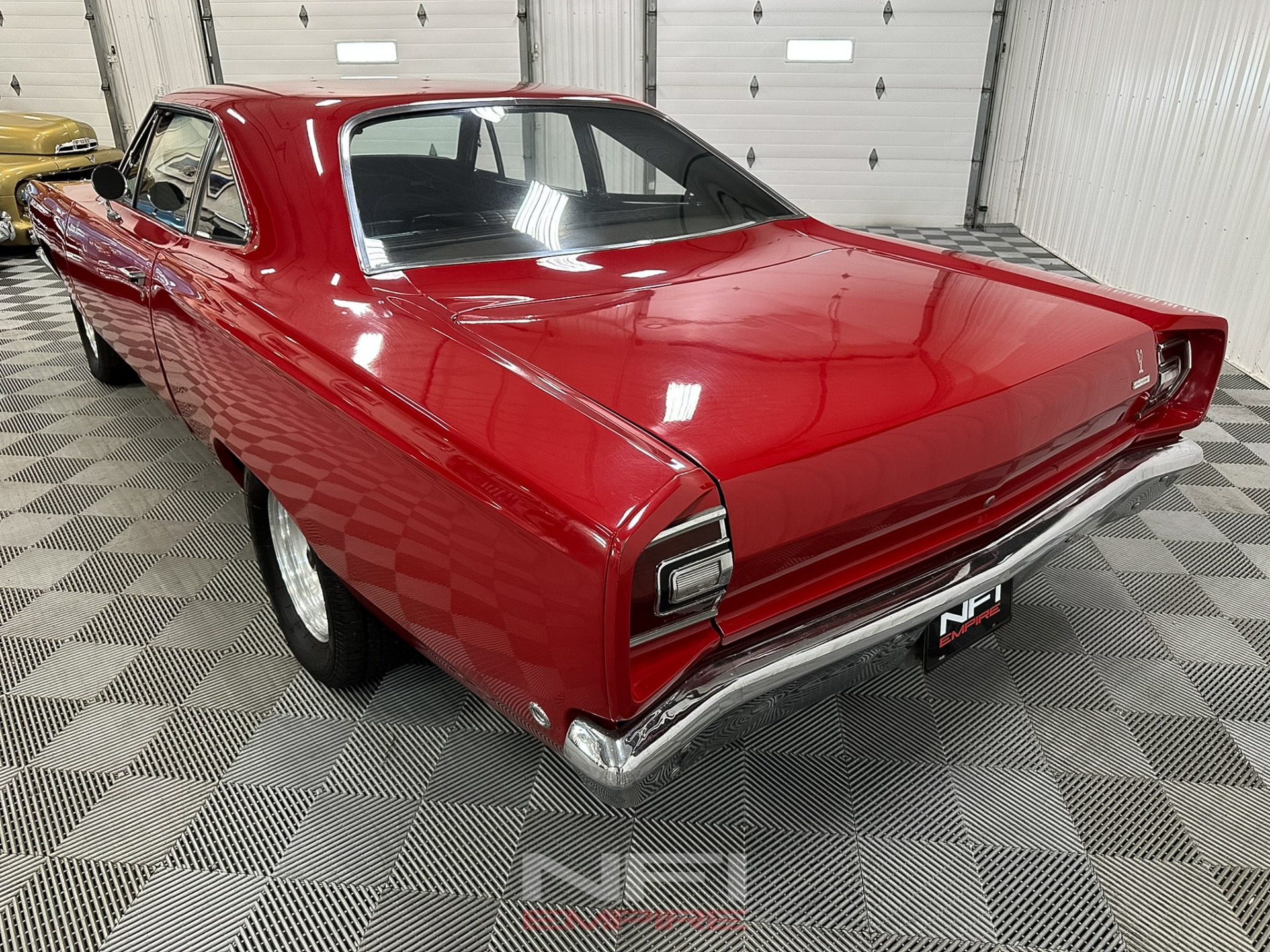 1968 Plymouth Road Runner finished in its restored bodywork from 1995 and powered today by a 426 Hemi that traces its origins to a 1966 Belvedere. This engine has been built .030 over with JE 10.5:1 pistons, ARP main studs and rod bolts, resized rods, a Melling high-volume oil pump, Milodon deep oil pan and pickup, and a solid camshaft. Topped with a Mopar M1 single-plane intake, Holley 850 carburetor, and Hooker Super Comp headers, it's a serious setup. Power is backed by a Torqueflite automatic transmission with reverse manual valve body and a 3,200-stall converter.