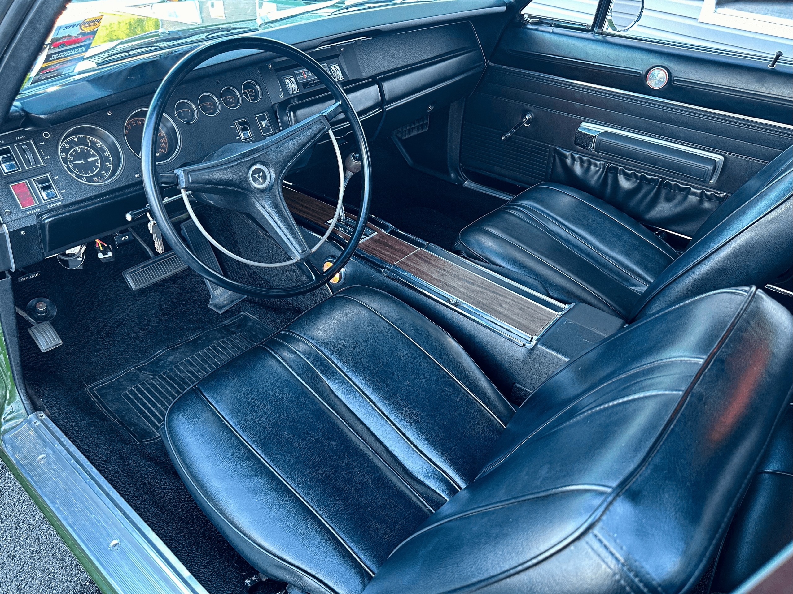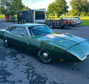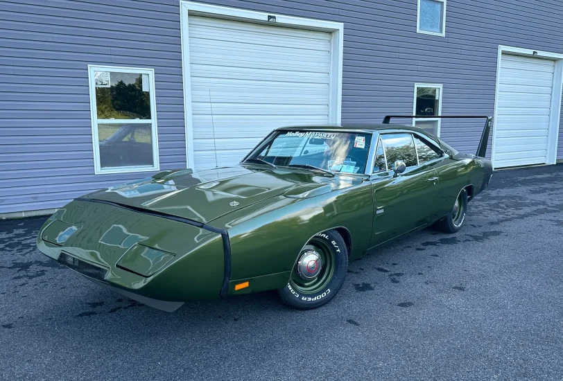 This Daytona Clone began life as a big block 383 1969 Charger. Originally optioned F8 green with black vinyl top and black bucket/console interior.