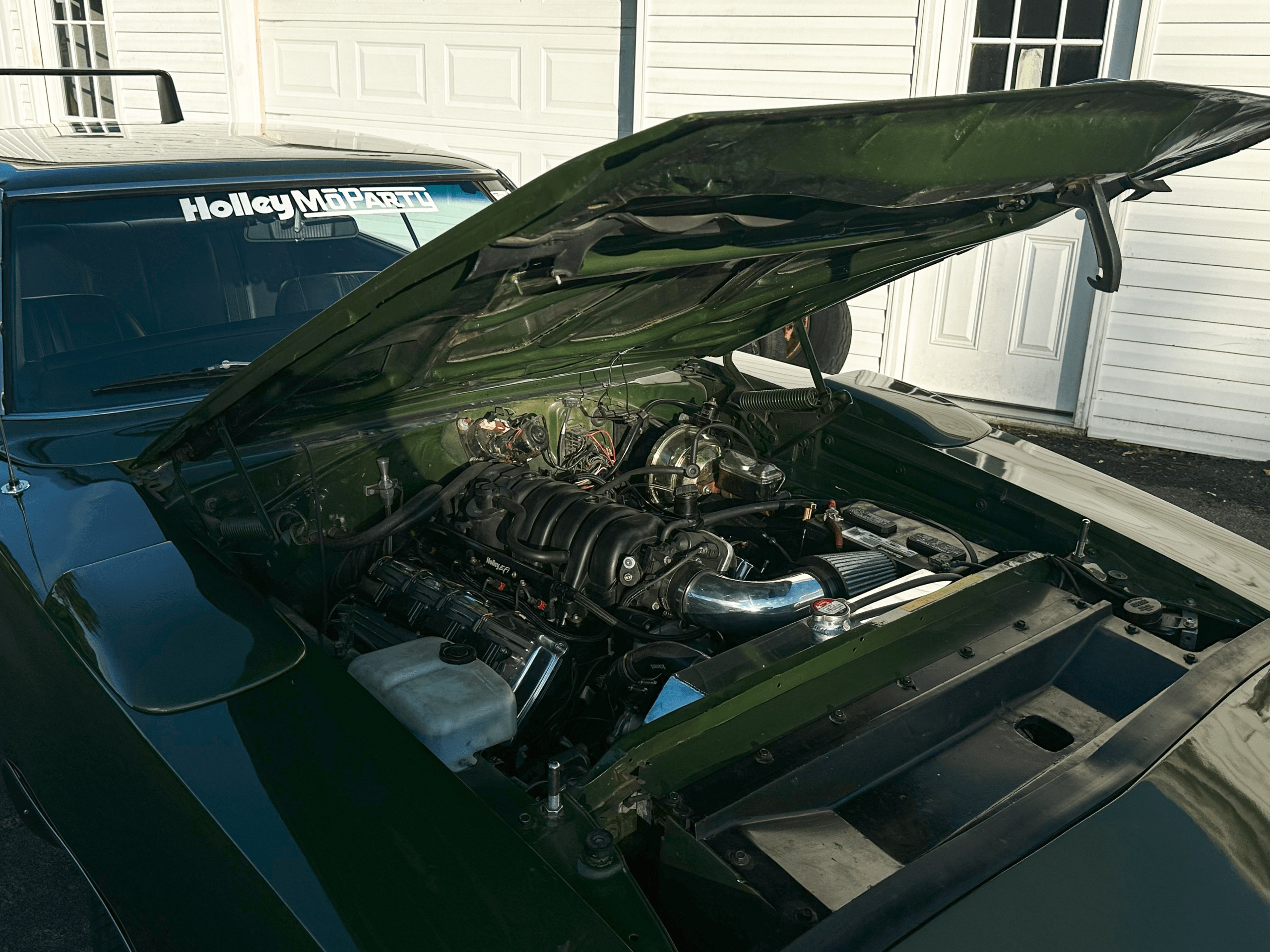 Hideaway headlights are vacuum powered just like the originals, toggled on using the stock light switch with no additional switches cut in to the dash. Everything about this car looks completely stock until the hood is popped.