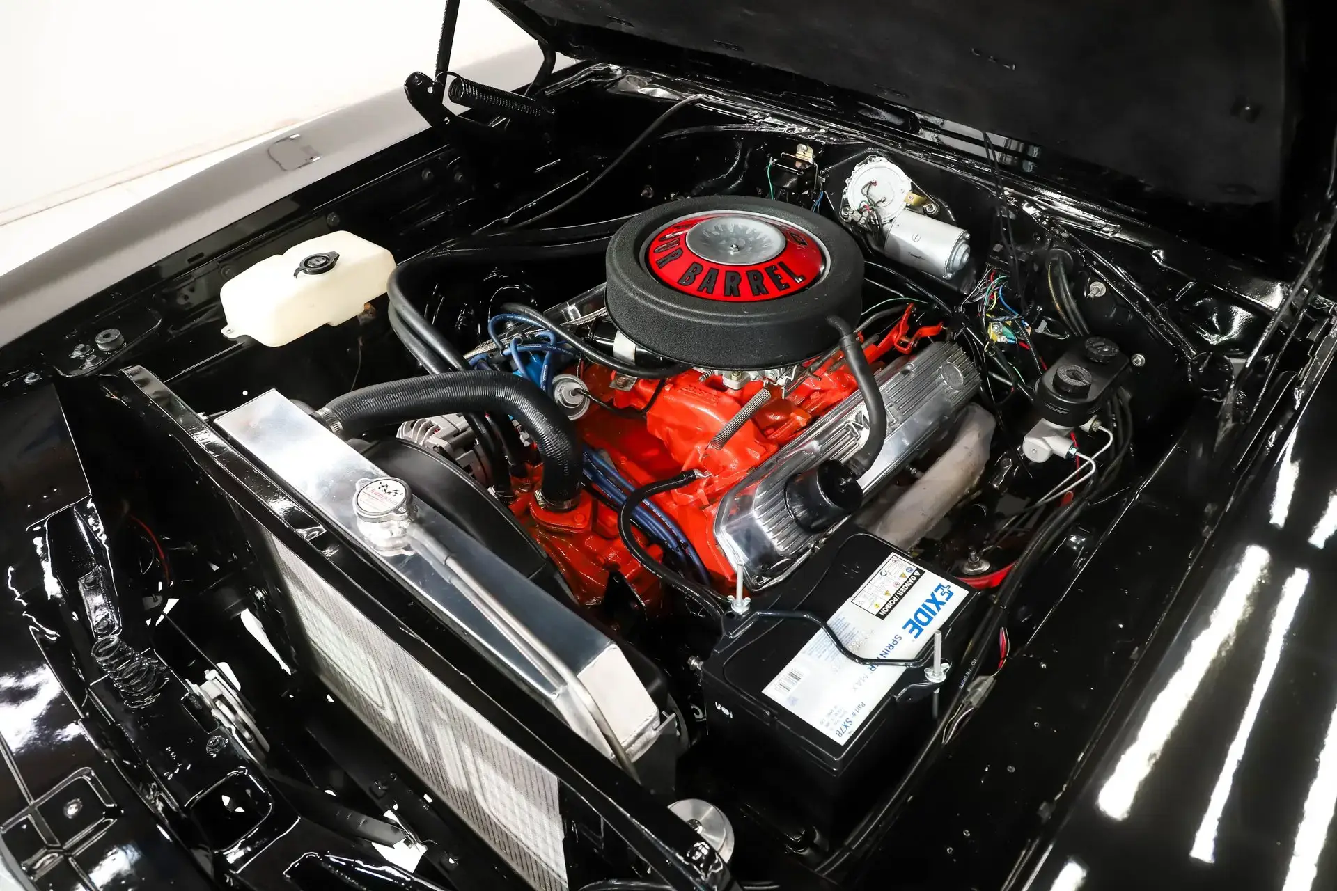 ENGINE COMPARTMENT: Original vin #s matching 440-375 hp Magnum. It's been completely rebuilt by the previous owner. It has stock manifolds, restored air cleaner and period M/T valve covers. It features power steering. Upgraded 1 wire Powermaster alternator and aluminum Champion radiator. The battery is secured, washers are hooked up, wiring is tidy, fan shroud is new and it has hood insulation. The engine bay is painted slick black and the hidden vin on the core support matches.