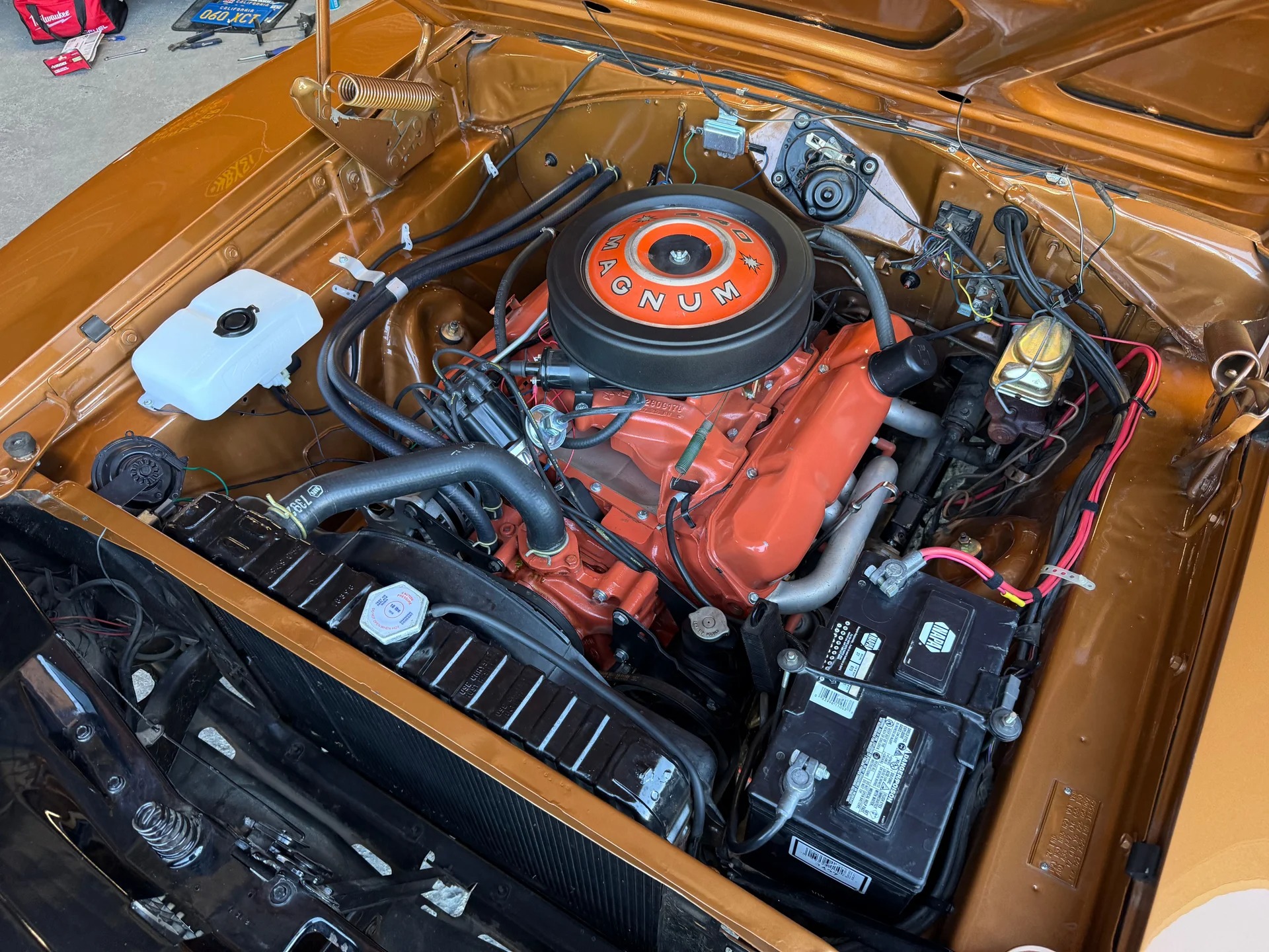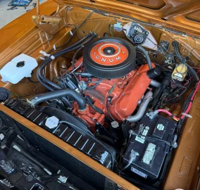-Thousands of dollars in recent maintenance including recored/restored factory radiator, new heater core and rebuilt heater box, transmission was serviced with new bearings and seals, 1 wire Pertronix electronic ignition distributor and date code OEM plug wires, fuel system gone through entirely with correct OEM filter/return and new Edelbrock AVS2 carb, brand new 17" Magnum style wheels and tires