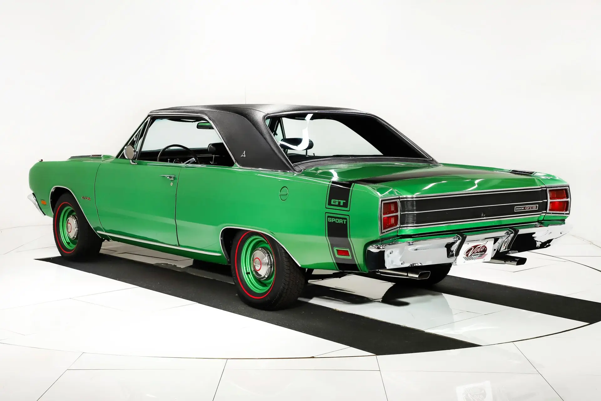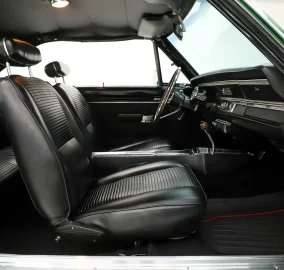 EXTERIOR: Believed to be the original paint! I just inspected it closely and other than a few minor blends I agree it is original paint. Overall, it shows great, with a gloss finish. Some of the edges are buffed thin. It has original glass including windshield which is a good indicator of low miles. Arguably the rarest of all Chrysler high impact colors Code F6 Bright Green was only available for a limited production run in the spring of 1969. The seasonal availability of the color not only makes it incredibly rare but also earned it the nickname "Spring Green". Even at the most prestigious of events, you'll be lucky to find a real deal "Spring Green" car. A new vinyl bumble bee stripe was just added. The original vinyl top presents well. The chrome and trim is exceptionally nice. The fender mounted turn signals are a very cool original option too. It's sitting on body color painted rims with poverty hubcaps and new BFG radial red line tires.