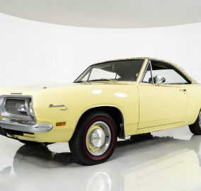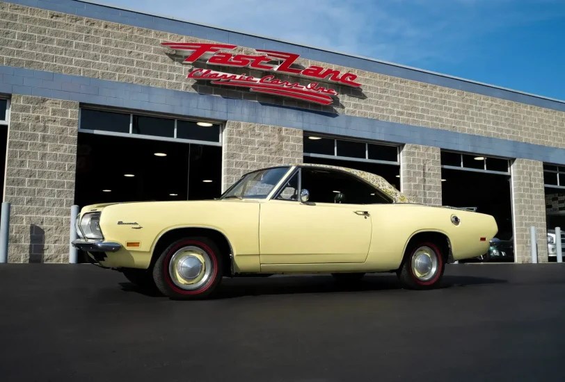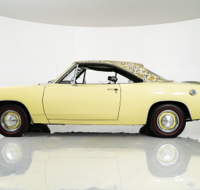 This 1969 Plymouth Barracuda Mod Top is one of the rarest and most distinctive Mopars ever produced. Under the hood is its numbers-matching 318 4-barrel V8, paired with a numbers-matching 3-speed automatic transmission, giving it both originality and dependable cruising power. Finished in striking Sunfire Yellow with its unmistakable yellow and black floral Mod Top, this car embodies late-1960s design flair like few others.