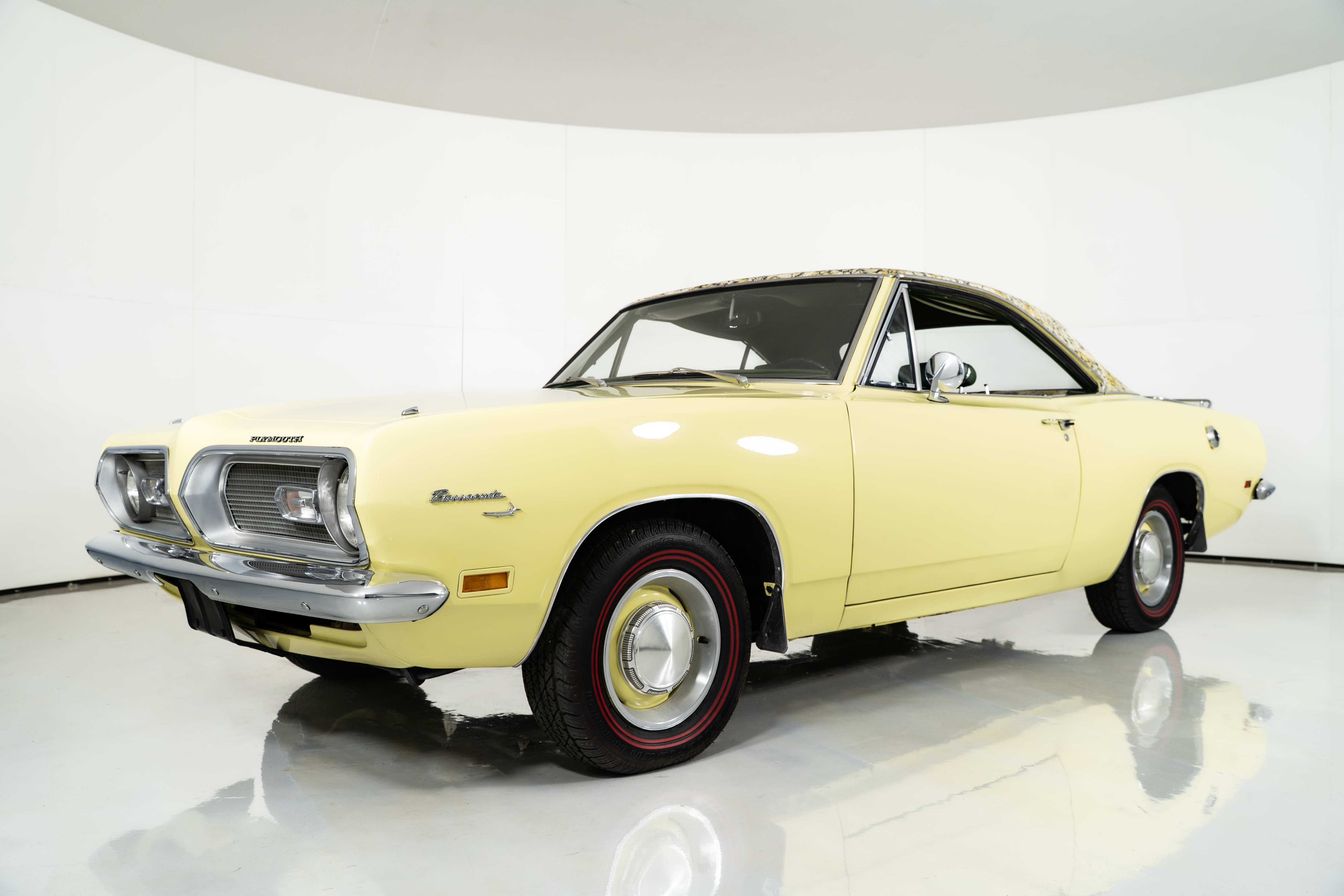 Rolling on 14-inch color-matched steel wheels with BF Goodrich Redline radials, this Barracuda for sale has presence from every angle. Complete with its original broadcast sheet, this example is 1 of just 937 Mod Top Barracudas built, and one of only 24 painted Sunfire Yellow with a Yellow Mod Top. A stunning and authentic piece of Mopar history!