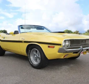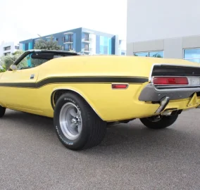 Gateway Classic Cars Fort Lauderdale is proud to present this 1970 Dodge Challenger Convertible. This iconic muscle car is presented in a striking yellow exterior that captures the essence of its era, turning heads wherever it goes. The bold color is complemented by a sleek black cloth interior, offering a timeless contrast that enhances its vintage appeal.