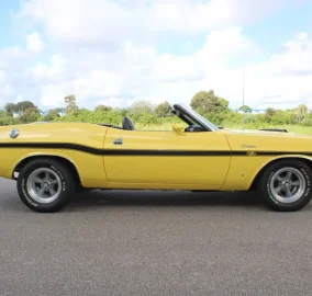 Inside, the Challenger offers a blend of classic style and modern convenience. The automatic convertible top allows for effortless open-air driving, superb for enjoying sunny days. The interior features both cloth and vinyl elements, providing a comfortable and stylish environment for both driver and passengers. An AM/FM radio adds to the nostalgic feel, allowing you to enjoy your favorite tunes as you cruise.