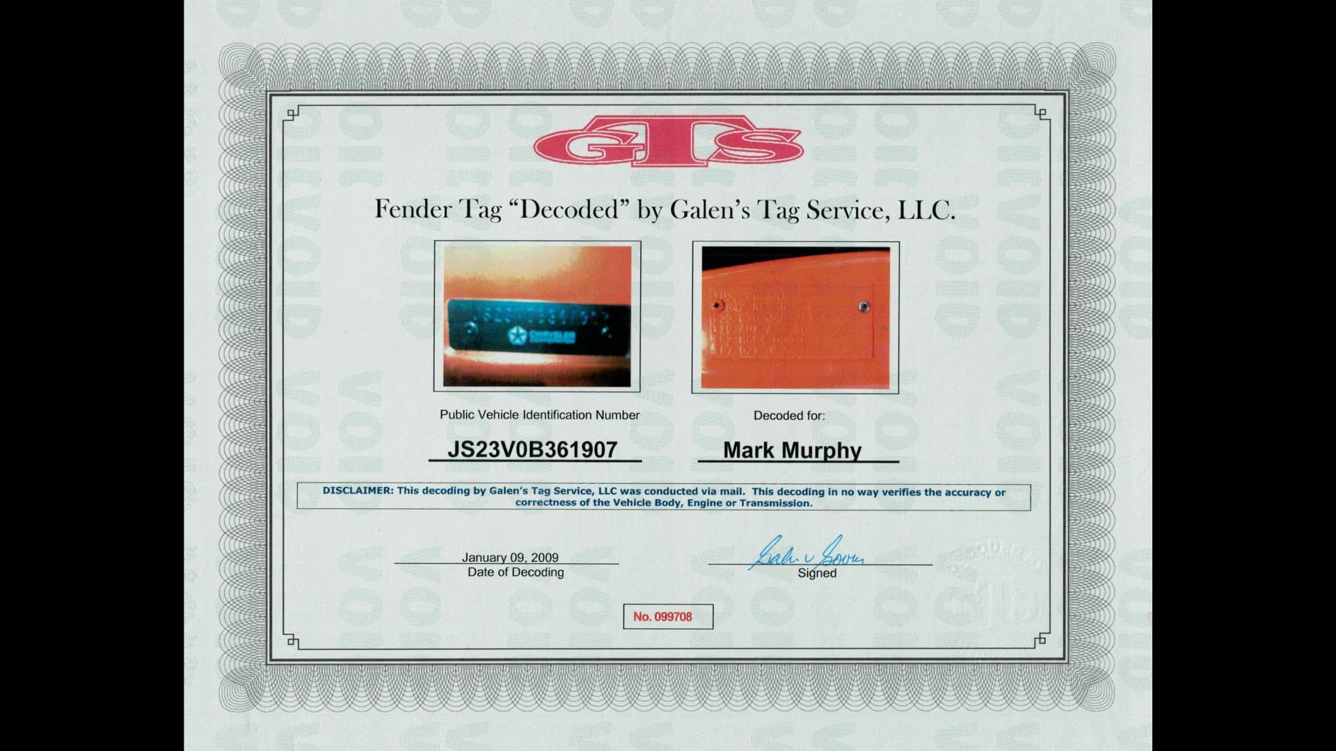 Original matching numbers driveline