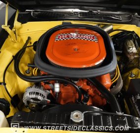 Under the hood, the original numbers-matching 340 cubic-inch V8 remains in place, topped by its iconic six-pack induction setup with three two-barrel carburetors mounted on an Edelbrock Performer intake. The air cleaner carries hand-signed autographs from Richard Petty and Dan Gurney, adding a unique collector's touch. Power is routed through a Torqueflite A727 three-speed automatic transmission to the factory-style 8 3/4 rear axle. The suspension features A-arm torsion bars up front with leaf springs in the rear, reinforced with sway bars front and back, while braking is handled by front discs and rear drums.