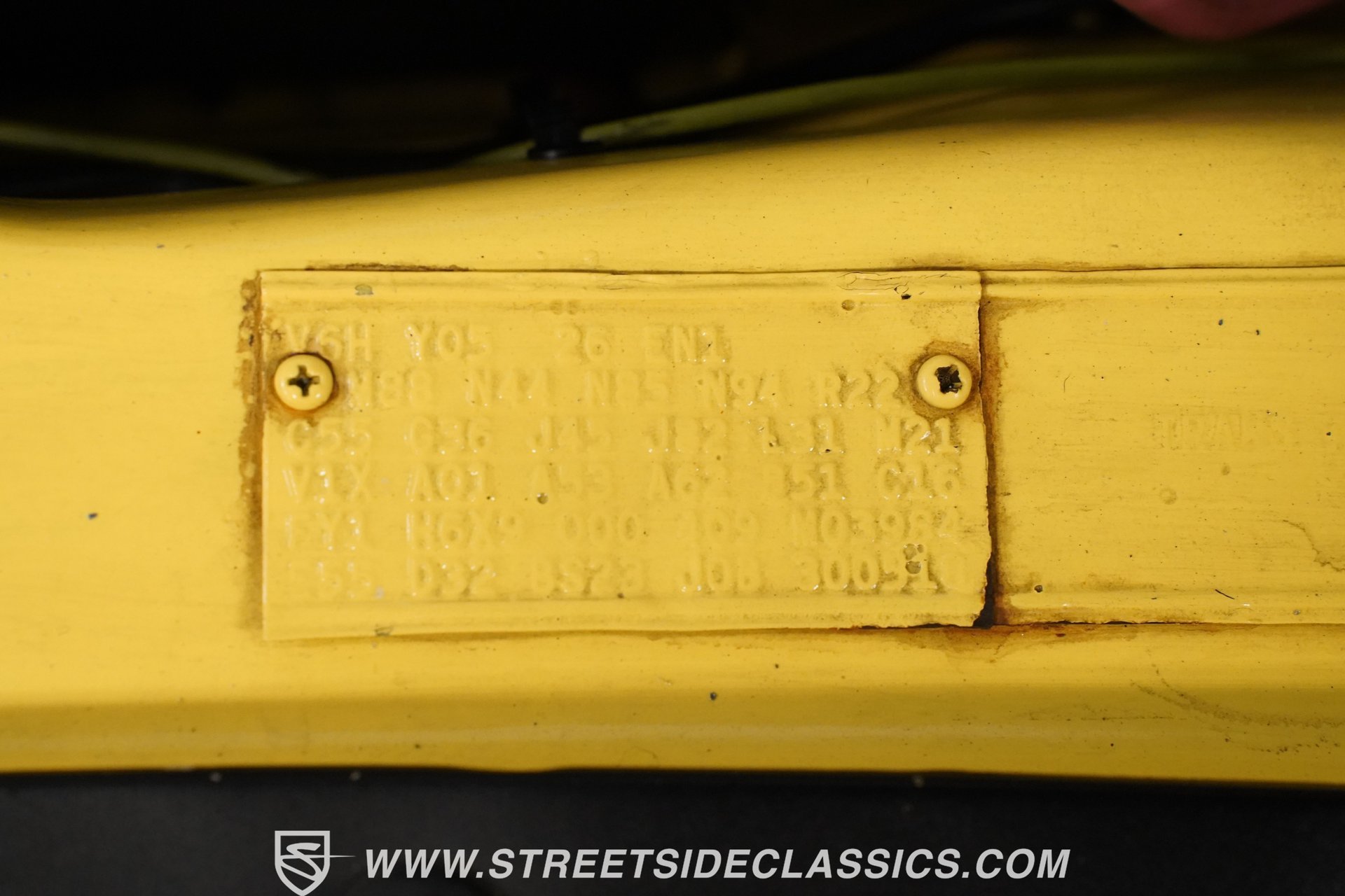 The exterior wears a full repaint in high-gloss Lemon Twist accented by matte black hood graphics, side stripes, and a rear spoiler. Rally wheels with polished trim rings wrapped in BF Goodrich Radial T/As complete the stance. The body shows well as a driver-grade car with strong shine and details that match the AAR's legendary factory style.