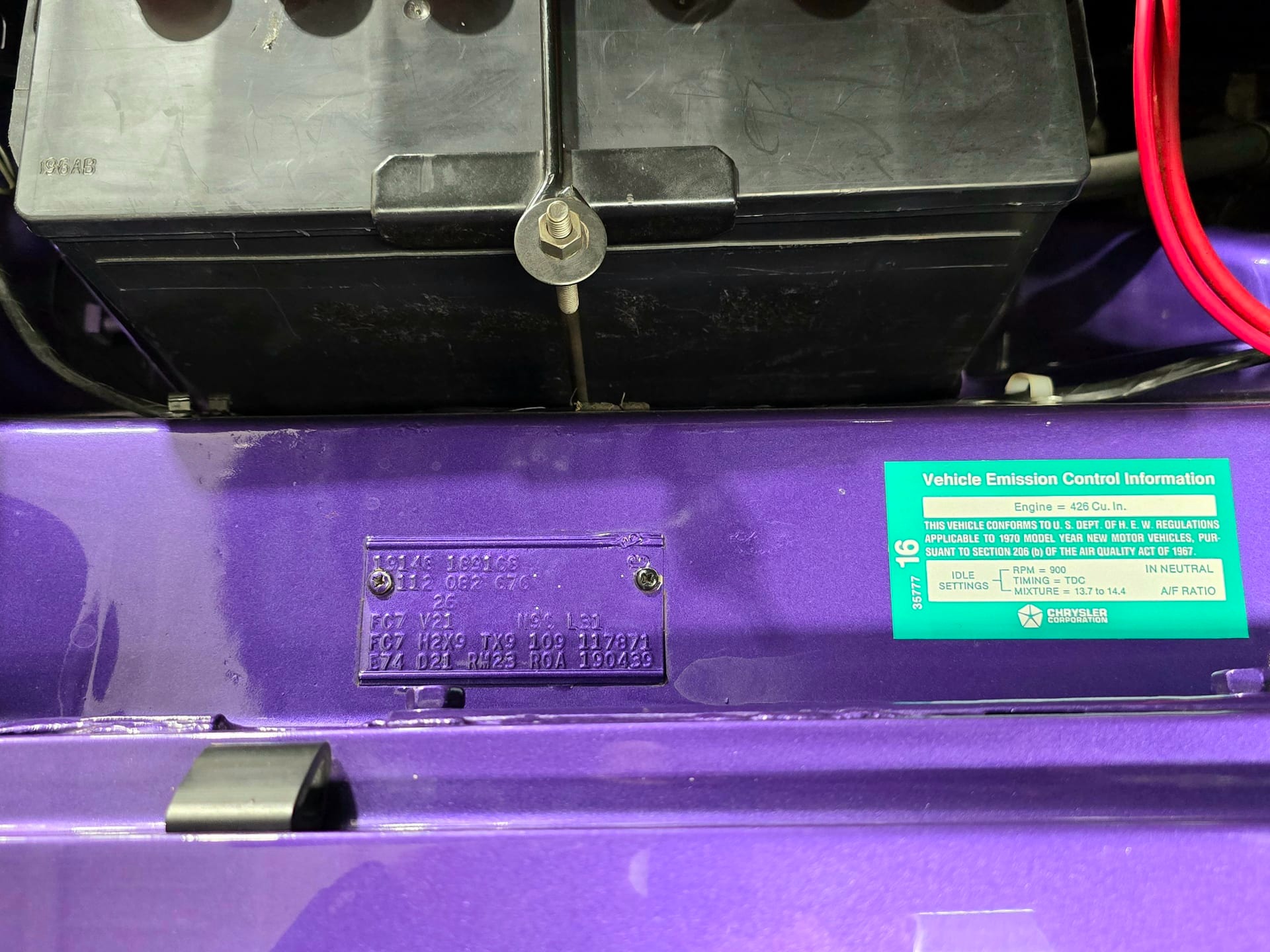 Matching numbers 426/425 HP Hemi V-8 engine