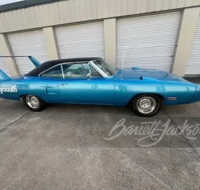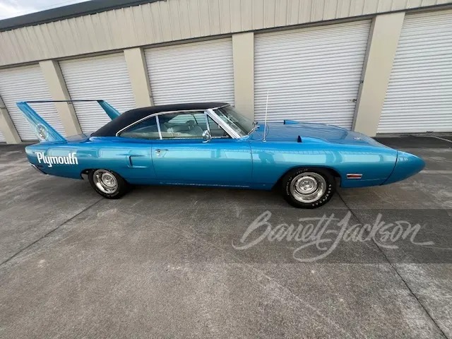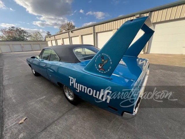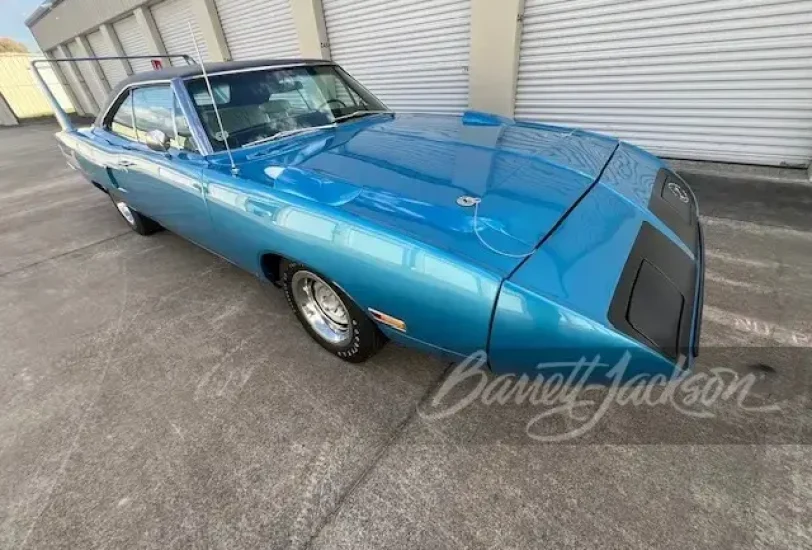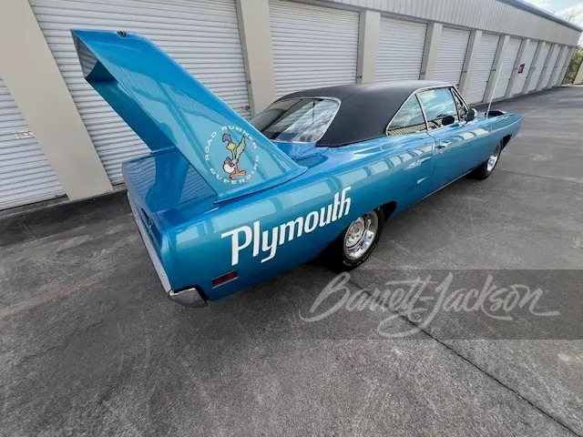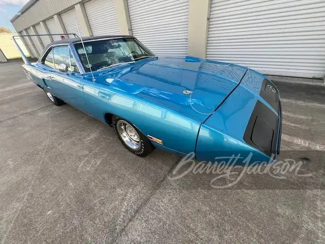 This 1970 Plymouth Road Runner Superbird powered by a matching-numbers 440ci V8 engine paired with an automatic transmission. Powertrain details include the rebuilt period-correct carburetor and a new 26-inch Chrysler big-block radiator dated 11/69 with new upper and lower radiator hoses and clamps. Interior details include the white upholstery as equipped. Exterior details include a B5 Blue finish with Superbird aero bodywork as produced. Other information includes a restoration completed about 10 years ago and a factory build date of November 1969, reported as a Wednesday.