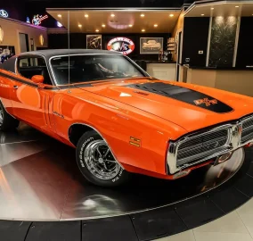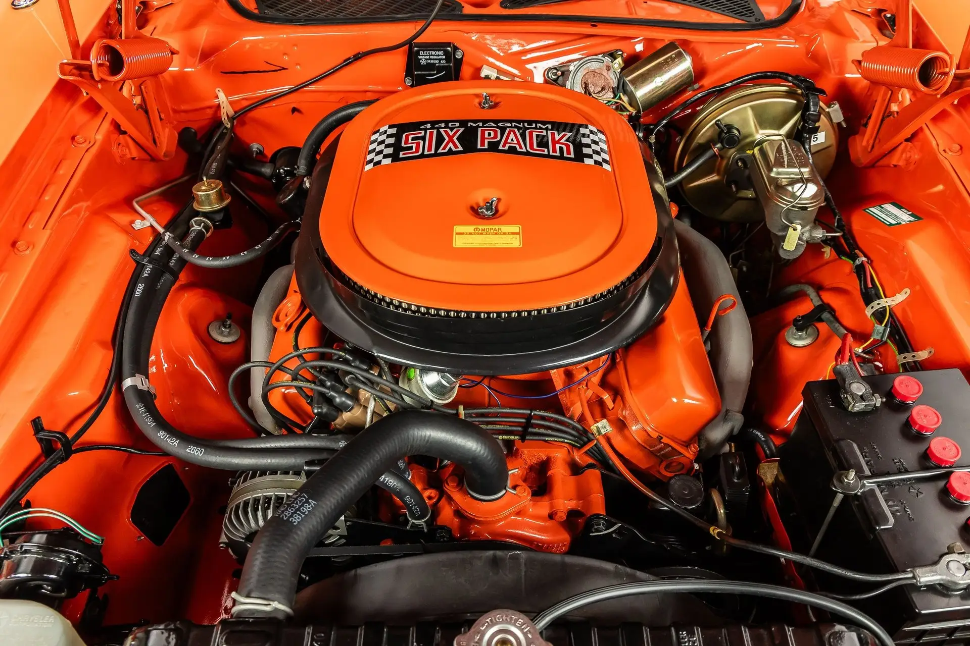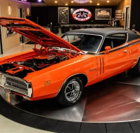 Check out this amazing 1971 Dodge Charger R/T V-Code! This Charger has been fully rotisserie restored with no expense spared and has been finished in Orange along with a Black Vinyl Top, Black Stripe and a set of Magnum 500 Wheels wrapped in BF Goodrich Radial TA tires to Complete the look! Under the hood of this beautiful Mopar sits a 440ci Six Pack Engine! Power is sent to the rear wheels through a Mopar 4 Speed Manual Transmission and Suregrip Rear End with a 3.55:1 Gear Ratio. This car has also been optioned with Power Brakes (Front Disc), Power Steering, Factory Suspension Setup, and Hideaway Headlights!