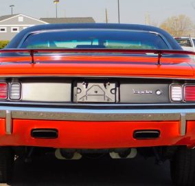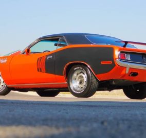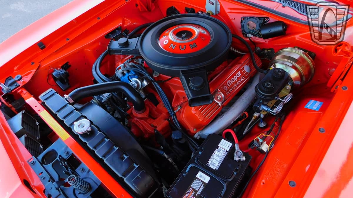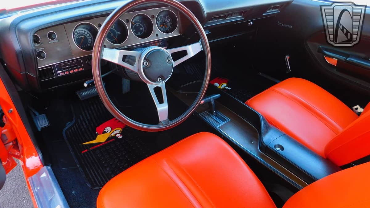 Step inside, and you'll find an equally impressive orange leather interior that exudes a sense of luxury and craftsmanship. Originally the exterior and interior of this Cuda was white/black with houndstooth cloth which was produced in very limited numbers. The new orange leather seats provide a comfortable and stylish ride, ensuring that every journey is as enjoyable as it is memorable. The new interior design reflects the era's attention to detail, with features that enhance both aesthetics and functionality.