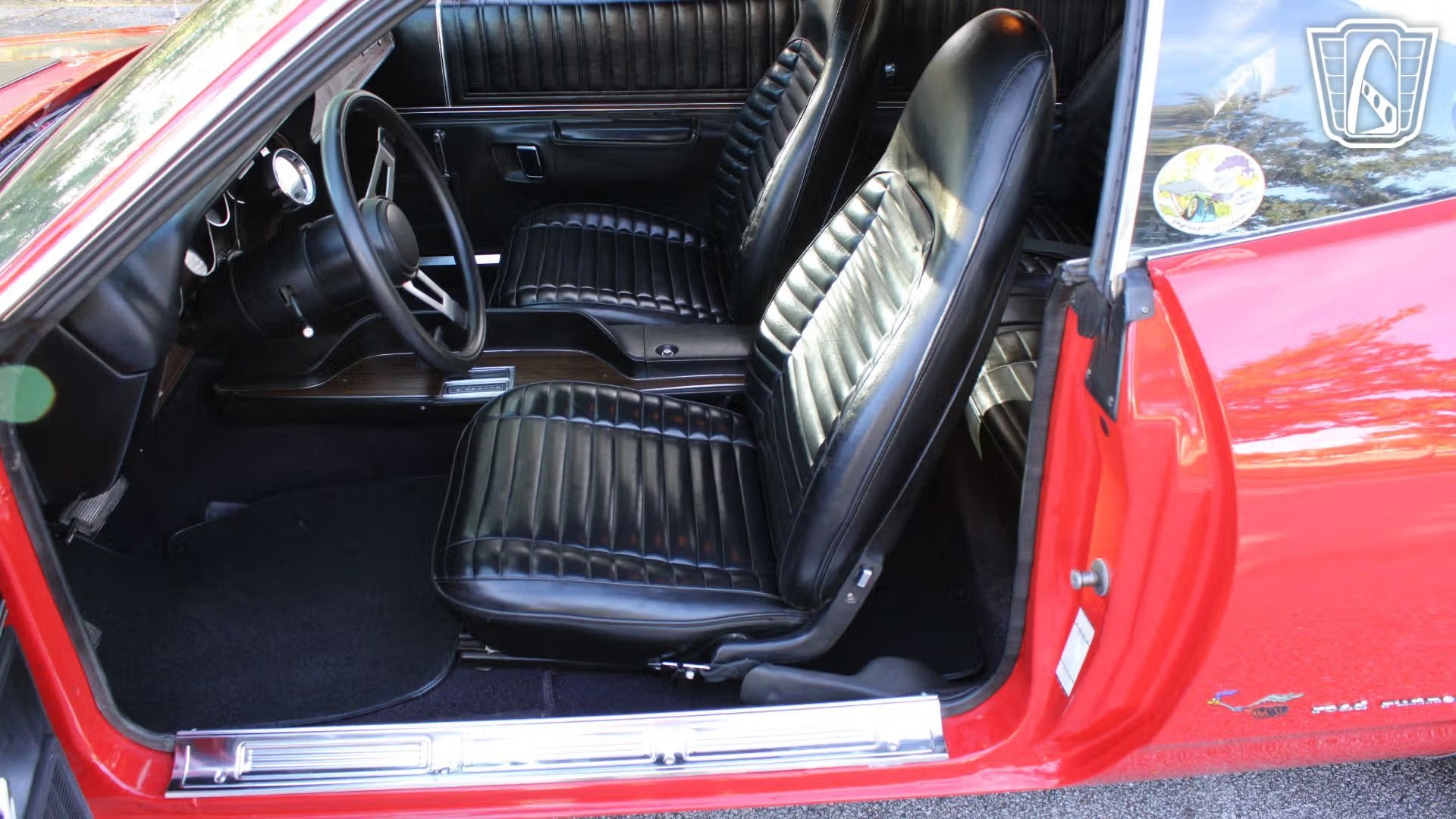 Slide into the driver's seat and you're greeted by a cabin that blends vintage charm with comfort. The Black leather interior invites you to settle in and take hold of the steering wheel, while the seatbelts provide a secure and reassuring touch. Turn on the AM/FM radio and let the tunes set the mood as you prepare for a drive that's as much about the journey as it is the destination.