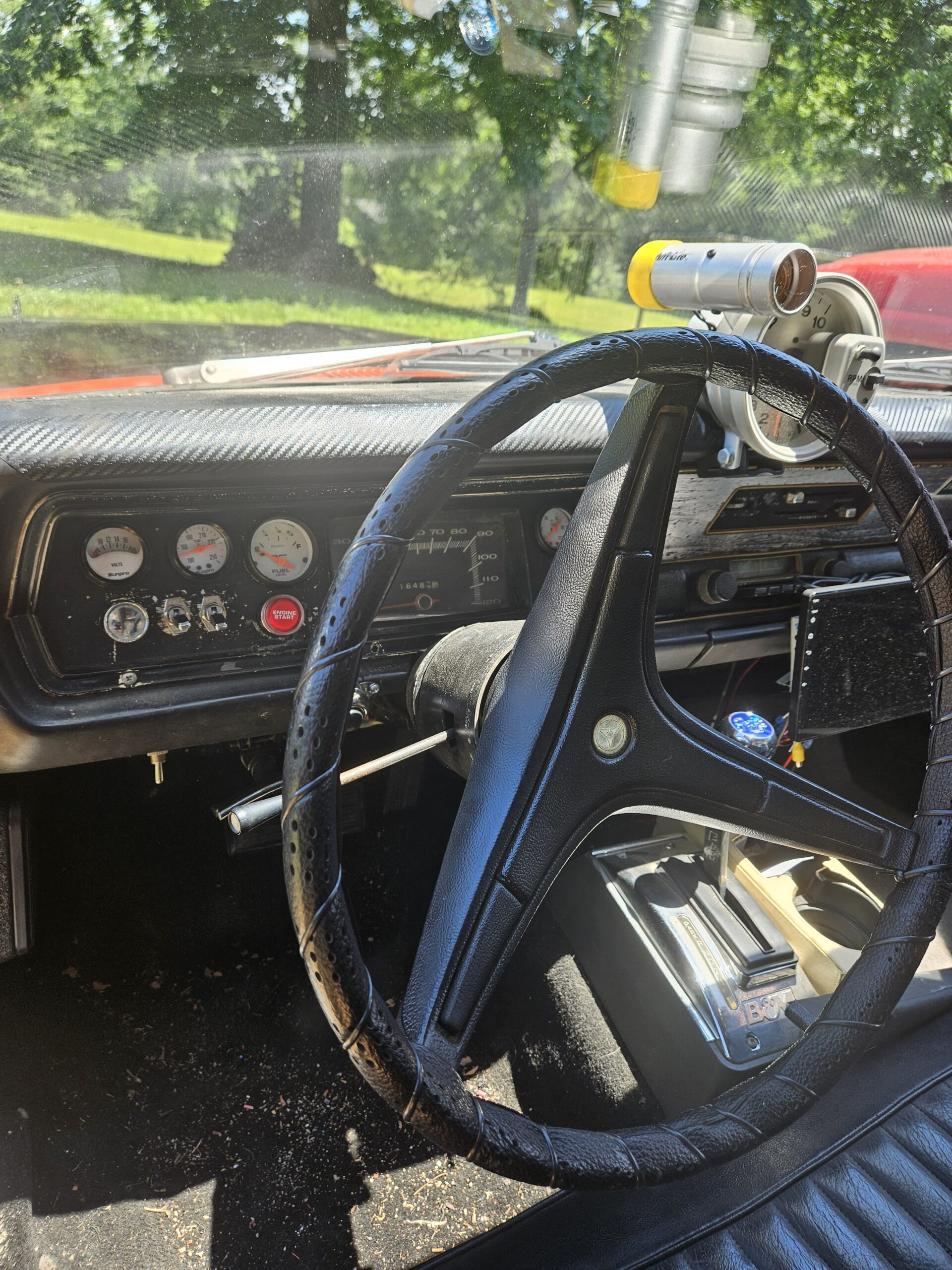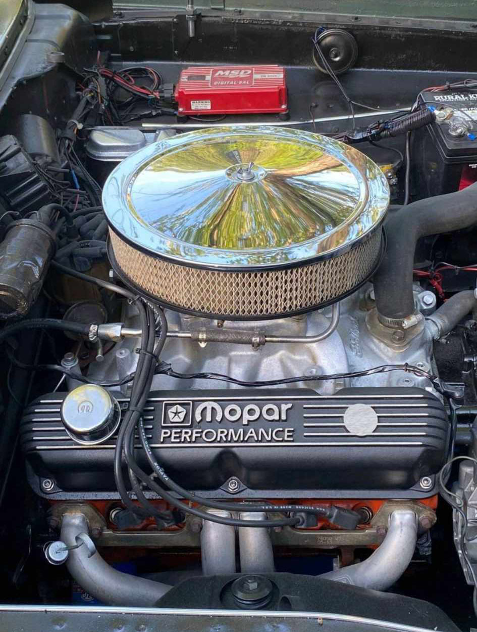 Street/strip built with a mildly built 360 bored .30 over .015 shaved heads. Original motor was a 318.