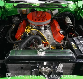 The 440 cubic inch V8 engine delivers impressive performance through a reliable A727 TorqueFlite automatic transmission. The powerplant breathes through Hooker long-tube headers and a Borla dual exhaust system. Performance upgrades include Indy cylinder heads, Quick Fuel 4-barrel carburetor, and an aluminum radiator for enhanced cooling. Front power disc brakes provide strong stopping power.