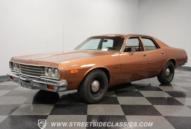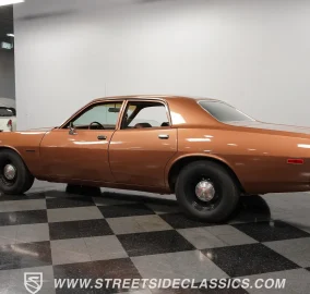 This 1974 Dodge Coronet spent 16 years undergoing transformation by a retired law enforcer, recreating the exact squad car that launched his career. The brown metallic paint gives this four-door sedan an authoritative street presence. Its clean, straight body lines recall the era of high-speed pursuits, while the 15-inch wheels and 235/70R15 tires plant it firmly on patrol. Dual exhaust tips signal its readiness for rapid response.