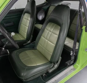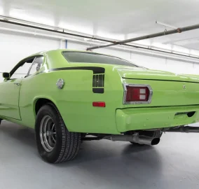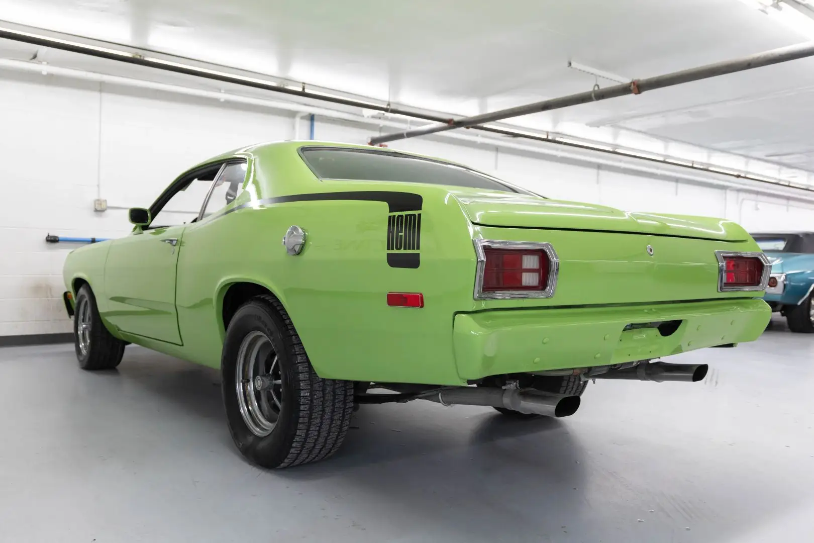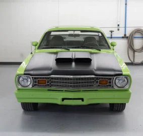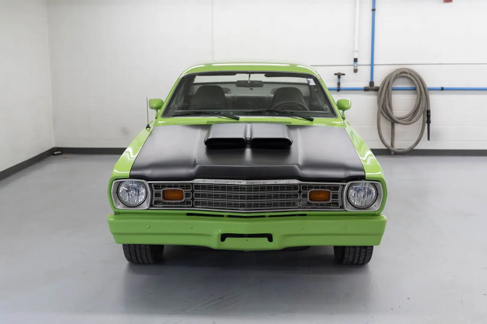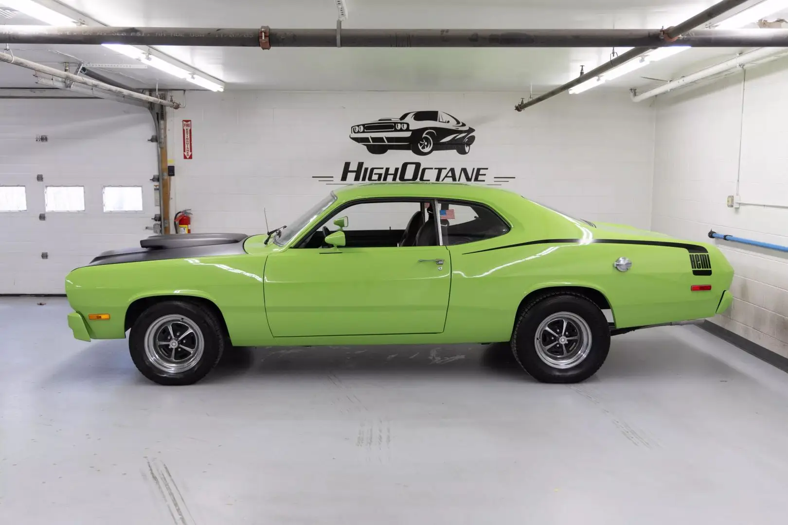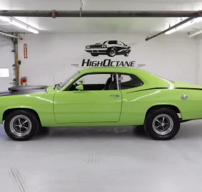 High Octane Classics is proud to present this 1974 Plymouth Duster, finished in a lime with a dark green vinyl interior. Power comes from a modern 6.1L HEMI V8 backed by a six-speed manual transmission. This car is a running and driving project that you can buy now or let us finish! Under the hood the modern HEMI is fortified with a Champion aluminum radiator, K&N cold air intake, remote oil filter kit, and a Holley fuel filter/return that runs to a fuel cell in the trunk. On the inside is a fully aftermarket cluster with matching Speedhut gauges, Kenwood head unit and speakers as well as a billet SST shifter.