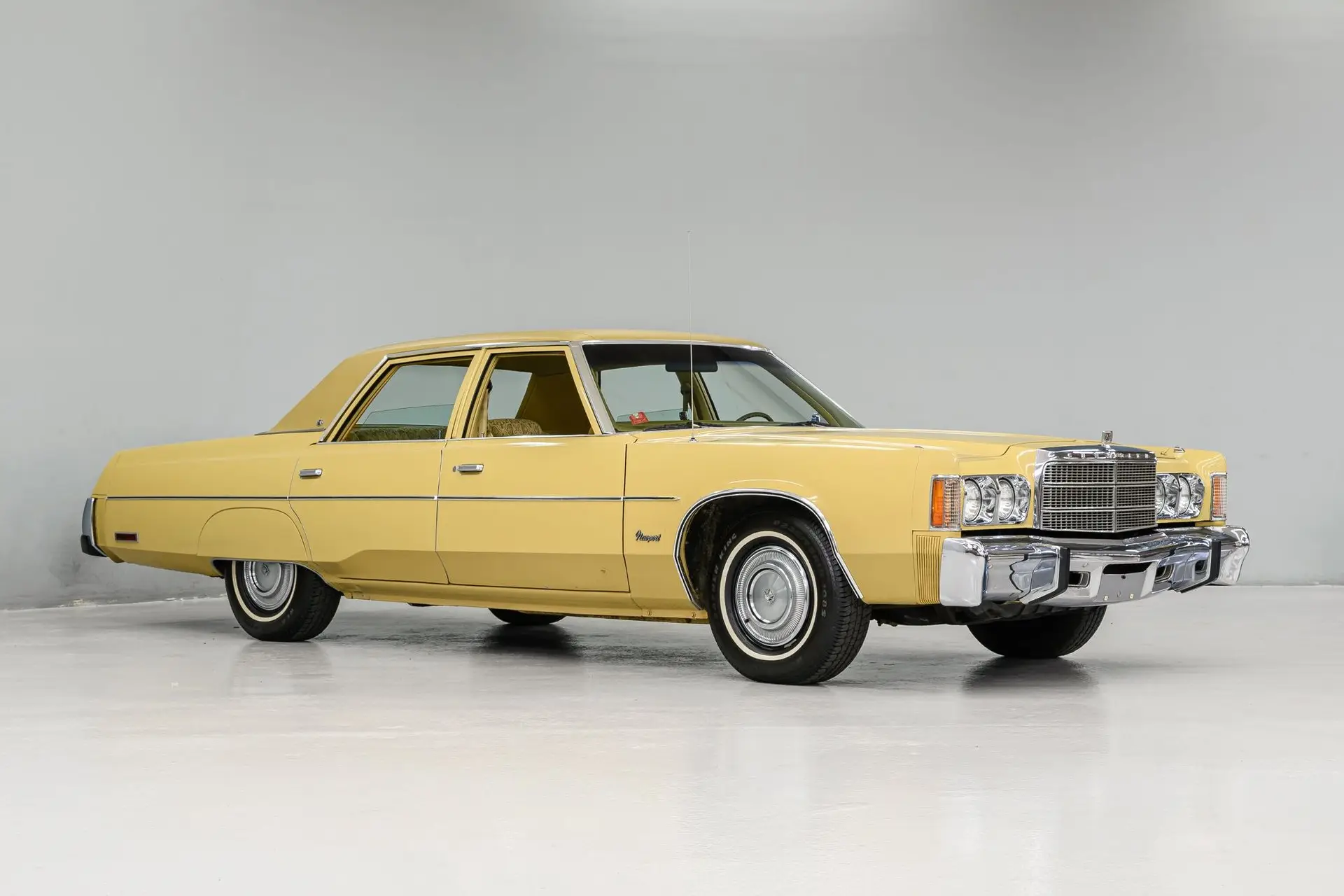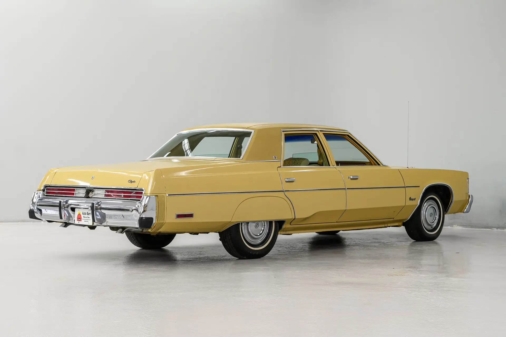 This 1977 Chrysler Newport sedan is in virtual original condition, and the current owner believes that the indicated mileage of 57,800 is accurate. The exterior is very, very straight and the factory Jasmine Yellow finish is in good condition. There is a wealth of chrome, rear fender skirts and a complementary full vinyl top that is in excellent condition - this Chrysler appears to have been kept in the garage.