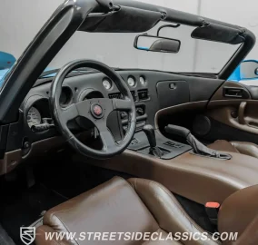 This 1995 Dodge Viper RT-10 exemplifies American muscle car excellence. Its custom blue wrap, luxurious brown leather interior, and the raw power of the V10 engine create an unparalleled driving experience. Call today!