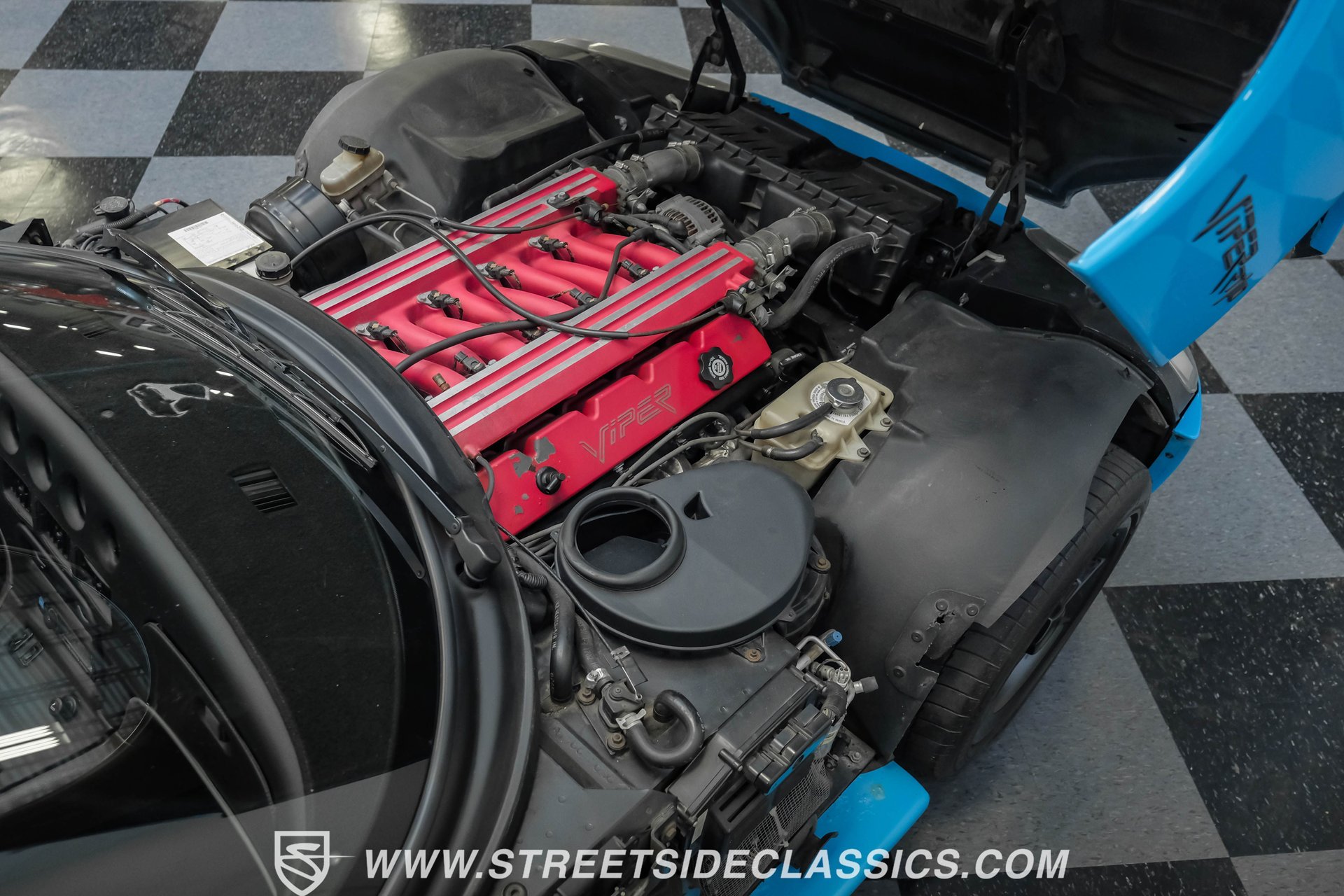 Open the clamshell hood to reveal the massive 8.0-liter V10 engine. This powerhouse is mated to a 6-speed manual transmission, delivering an engaging and visceral driving experience. The independent suspension system, both front and rear, coupled with power disc brakes at all four corners, ensures that this Viper handles curves as adeptly as it dominates straightaways. Power steering adds precision to every maneuver. The side-exit exhaust system not only looks incredible but produces a thunderous growl that announces your arrival with authority.