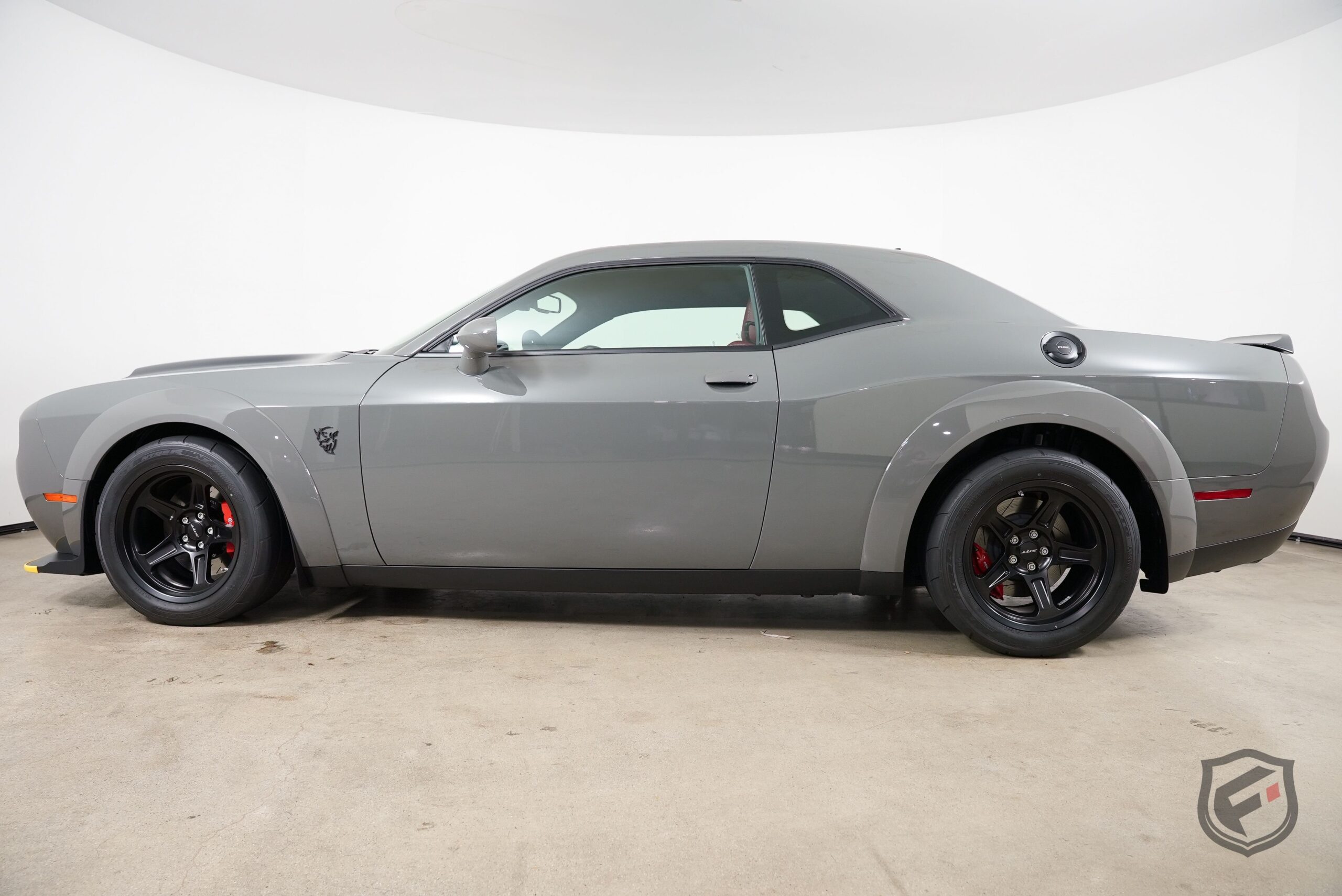 Introducing a pristine 2018 Dodge Challenger Demon, a true masterpiece for any automotive enthusiast! This exceptional one-owner vehicle boasts a mere 361 original miles, showcasing its incredible condition and rarity. Finished in striking Destroyer Gray, this Challenger is complemented by an eye-catching Demonic Red interior, creating an unforgettable aesthetic that commands attention.
