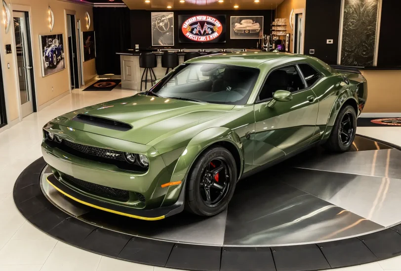 Check out this amazing 2018 Dodge Challenger SRT Demon! This Challenger is finished in beautiful F8 Green with Aluminum Wheels which come with factory-mounted Demon specific Nitto Drag Tires! Under the hood sits a 6.2L Supercharged Demon HEMI, that can produce 840HP with Programming and 808HP with the Red Key! Power is sent to the road through a ZF 8HP90 8-speed transmission and Mopar Limited Slip Differential with 3.09:1 Gearing which helps this Beast of a Car Achieve 0-60 within 2.3 Seconds! This Demon contains only 276 original miles!