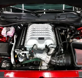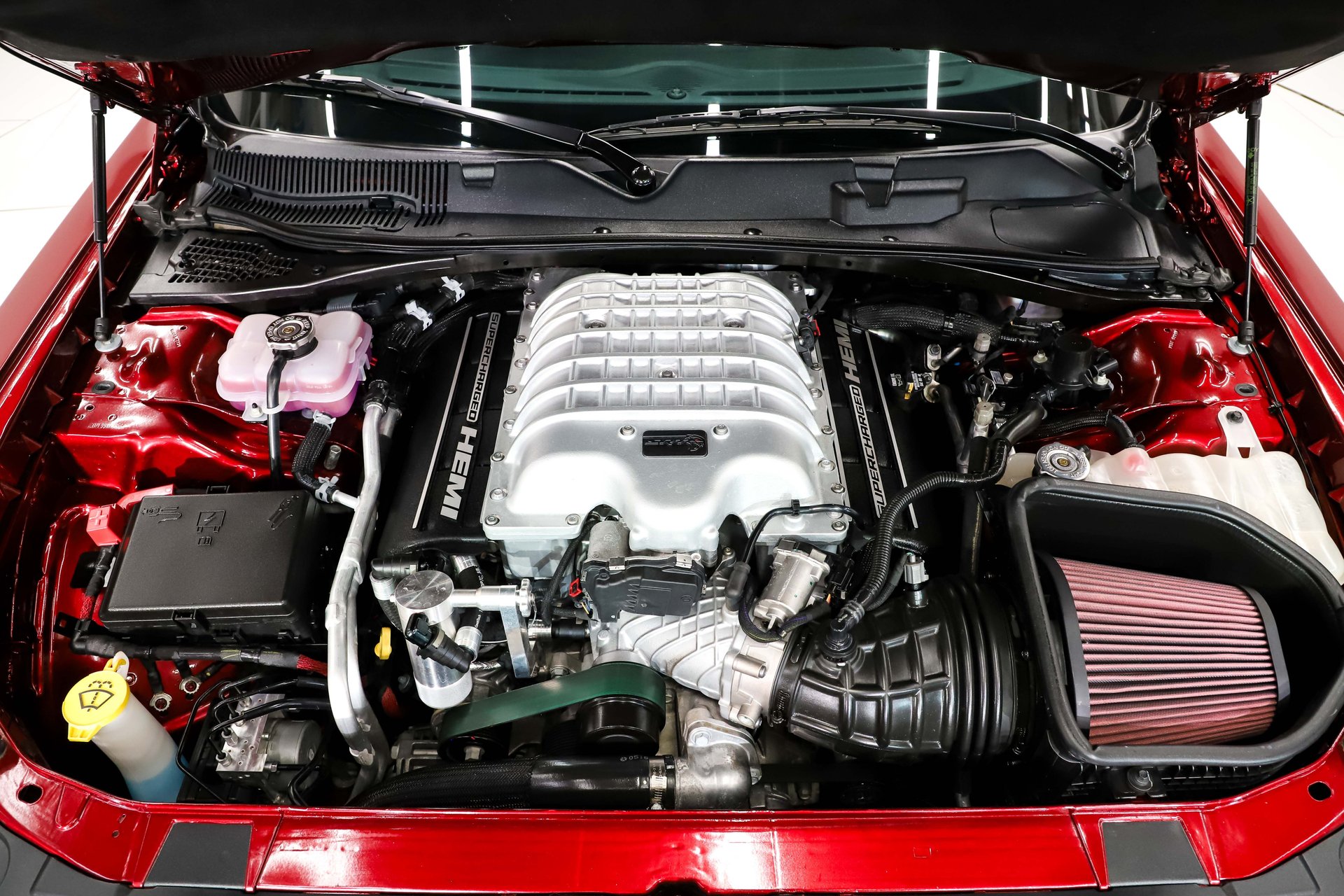 ENGINE COMPARTMENT: Unbelievable, the monster that lies beneath this hood! A 6.2L supercharged V8 making 797hp and 707 lbs of torque! The Redeye has 25 major component upgrades over the standard Hellcat including a huge 2.7 liter supercharger, forged internal components, enhanced lubrication, a different camshaft, higher RPM limit, dual stage fuel pumps and a very feature is the Power Chiller that actually uses the air conditioning system to cool the supercharger. All this power and yet with all its technology it is also reliable, it could be driven everyday!